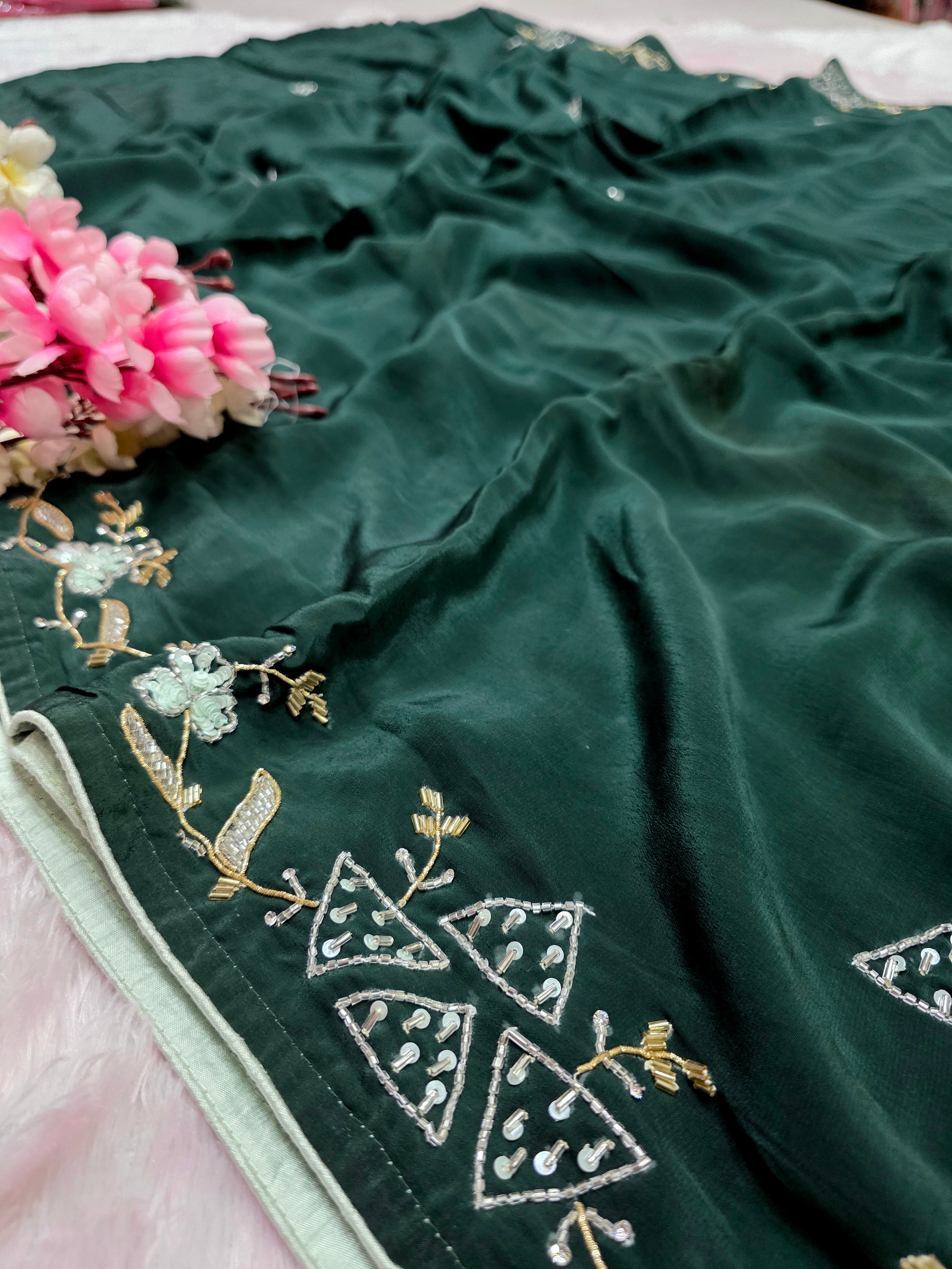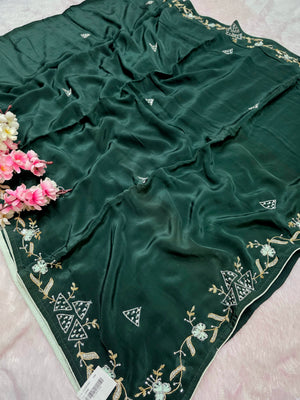 164002 शुद्ध ओपरा सिल्क डिजाइनर छायांकित साड़ी भारी कटदाना हाथ के काम के साथ