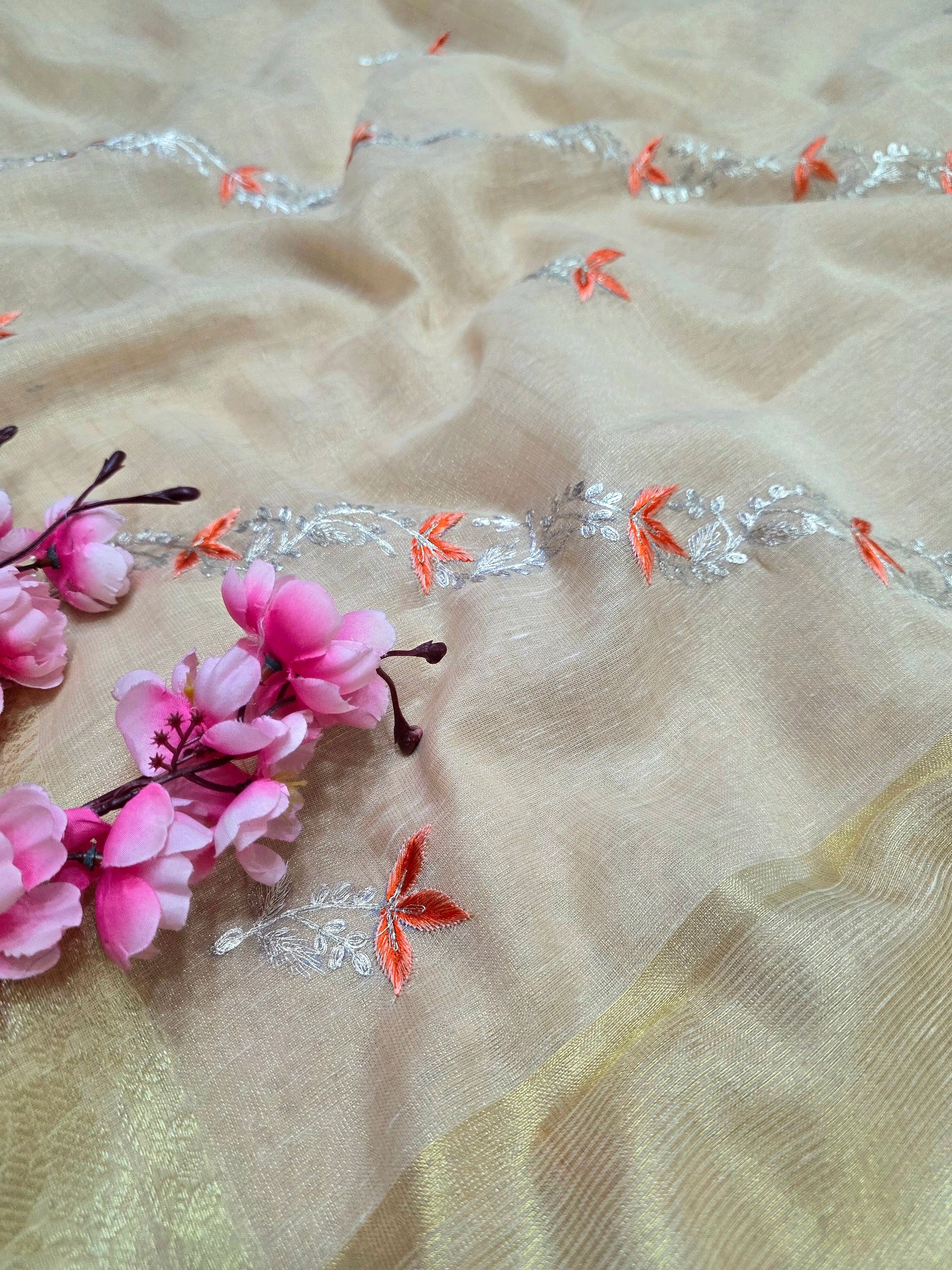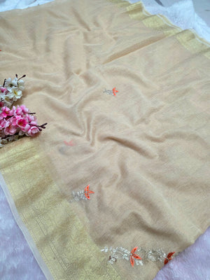 898001 Linen Silk Shaded Saree with Hand Pitta Work - Peach