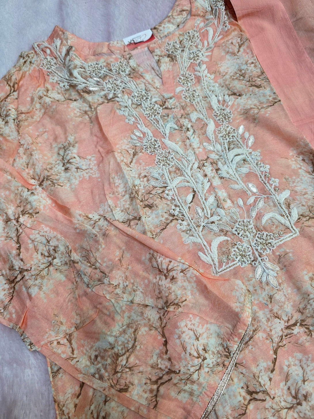 899012 Pure Maslin Silk Printed Semi Stitched Suit With Pure Chiffon Dupatta and Bottom Fabric