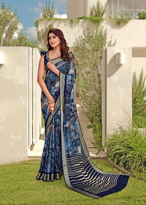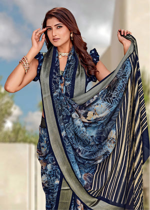 914004 Stylish Crepe Silk Digital Printed Saree - Navy Blue