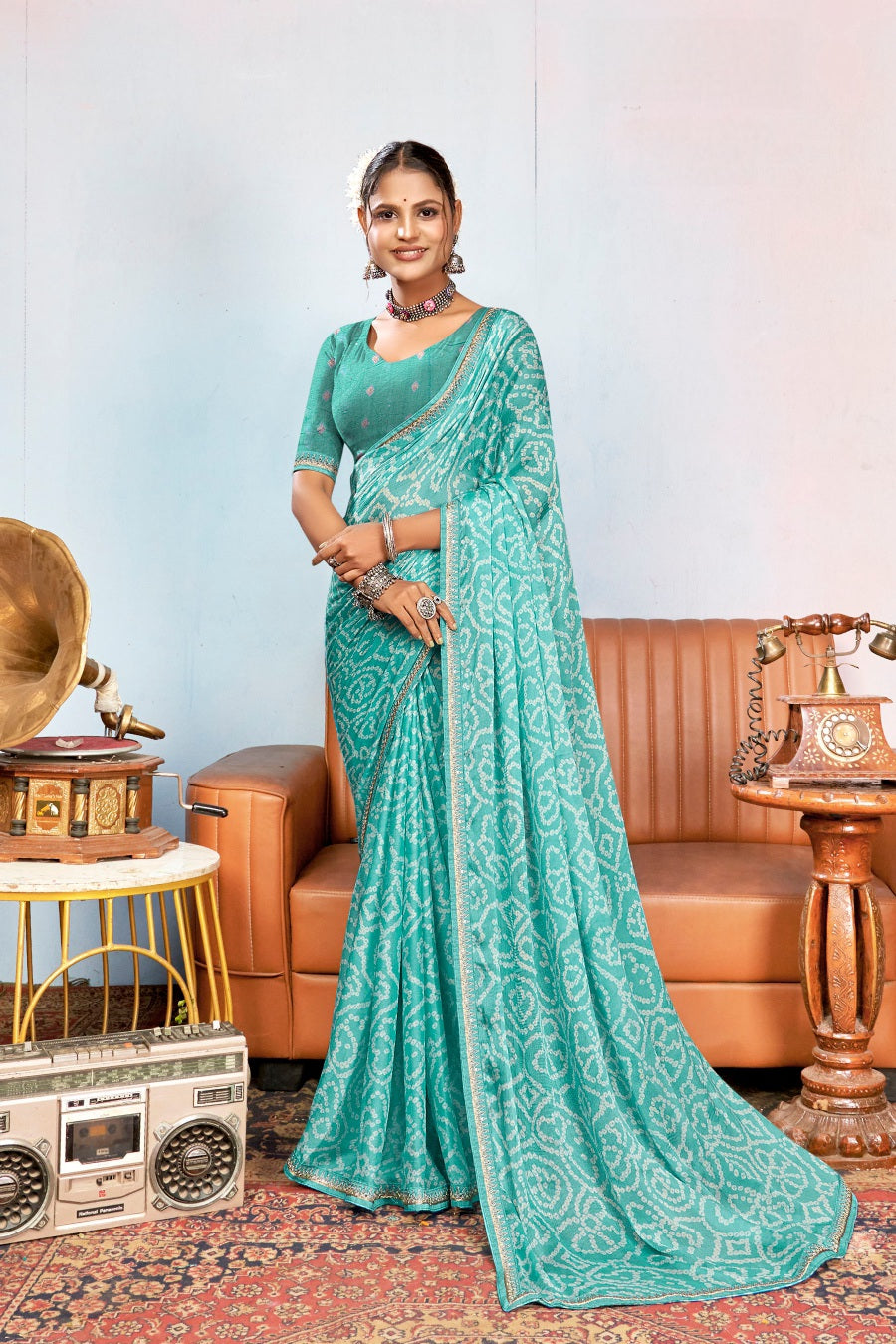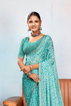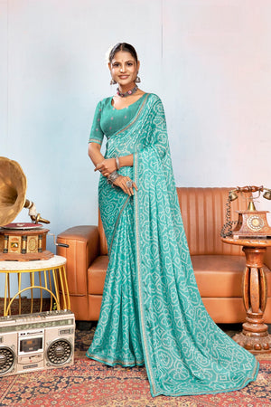 916003 Rajasthani Bandhani with Border - Sky Blue