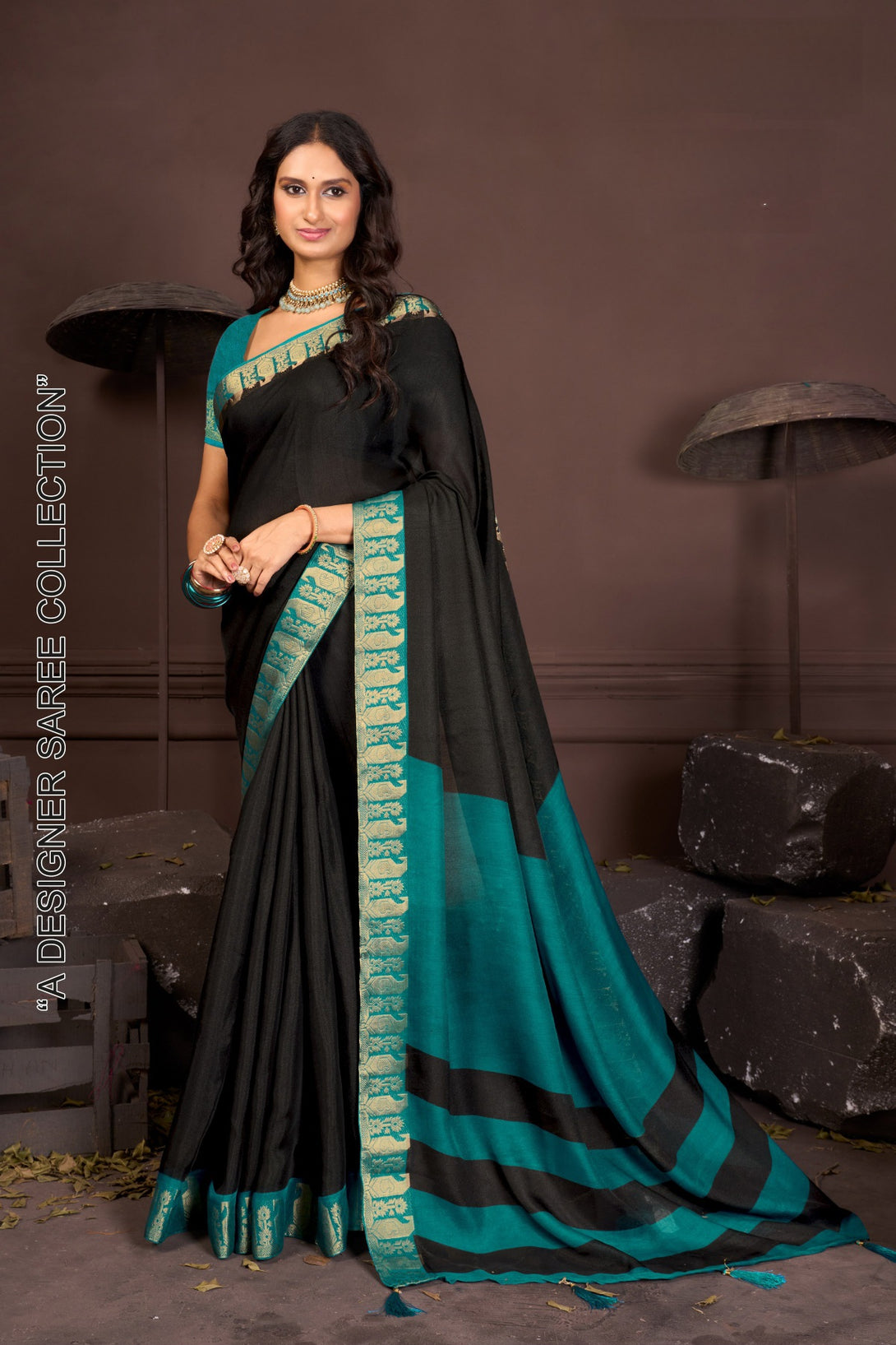 919003 Georgette Crepe Silk Soli Color with Banarasi Weaving Border Saree - Black