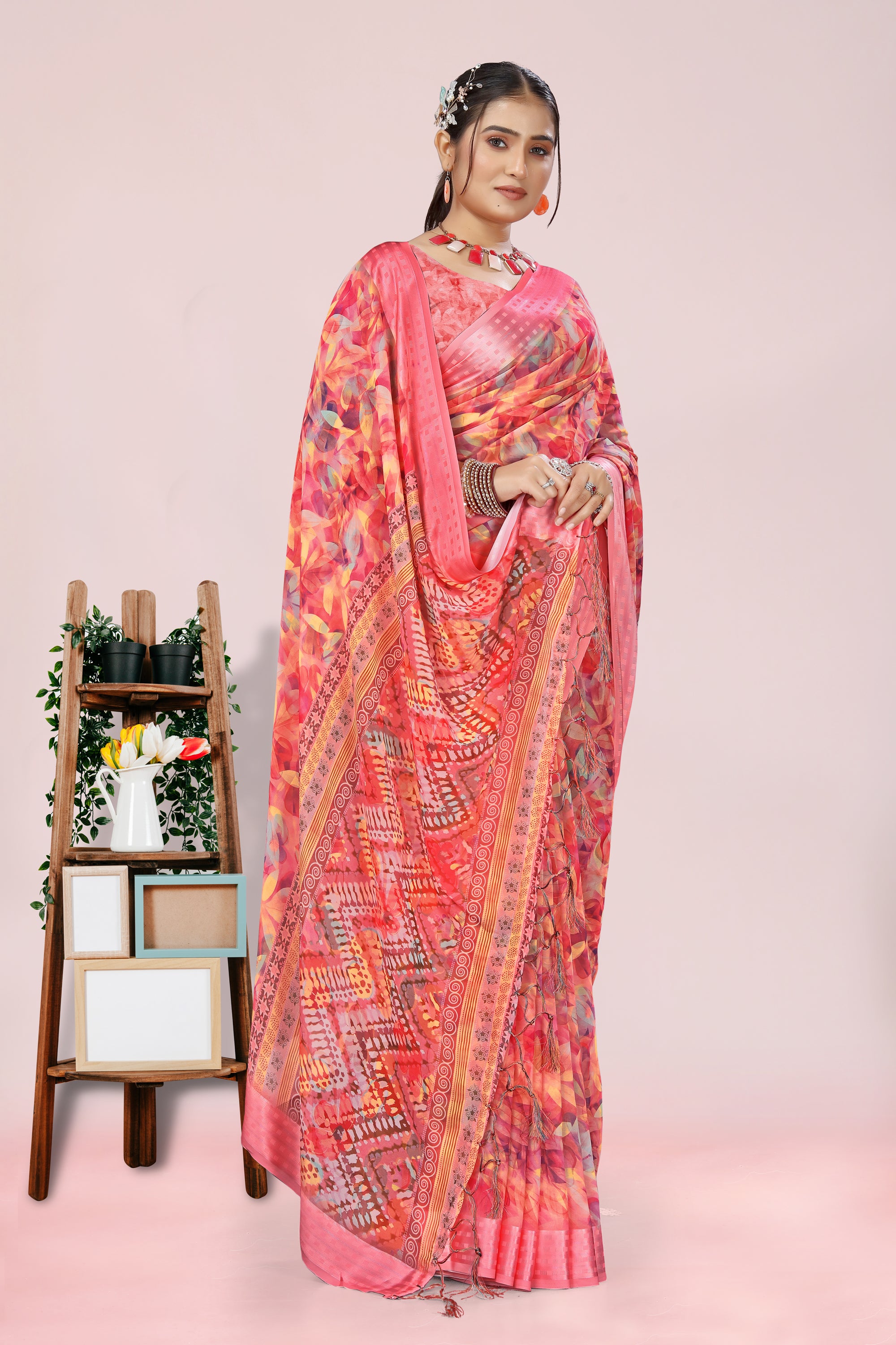 विशेष मुद्रित ब्रांडेड साड़ी यह साड़ी बहुत उच्च गुणवत्ता वाले कपड़े से बनी है, जिस पर डिजिटल / फूल प्रिंट है, जो बहुत नरम और समृद्ध अनुभव प्रदान करती है।