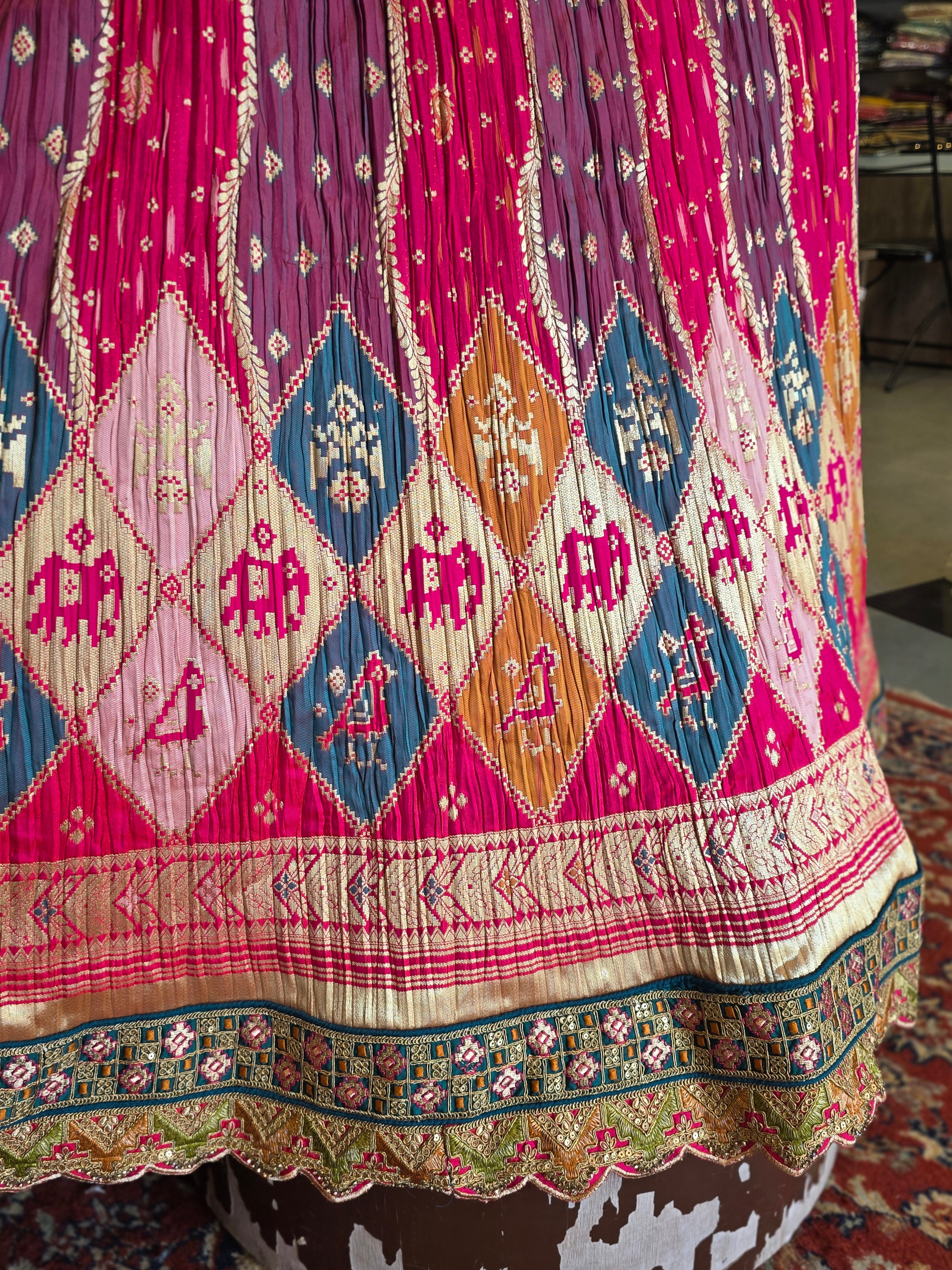 930001 Soft Silk Crush Patola Unstitched Lehenga with Heavy Work Blouse & Banarasi Silk Dupatta