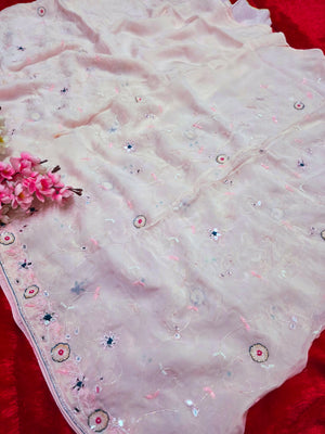9330 Exclusive Wedding and Party Perfect Pure Soft Organza Saree With Hand Work