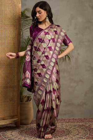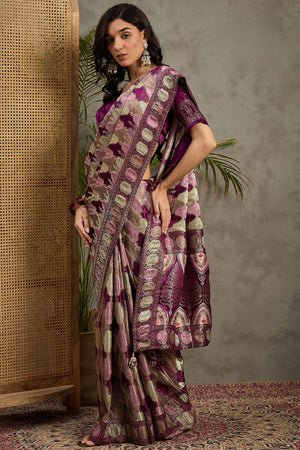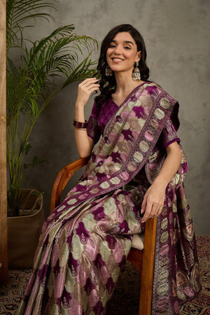 938001 Royal Kashmiri Pashmina Gajji Silk Purple Saree with Heavy Blouse