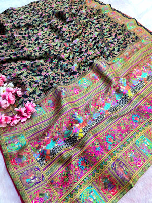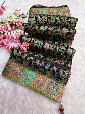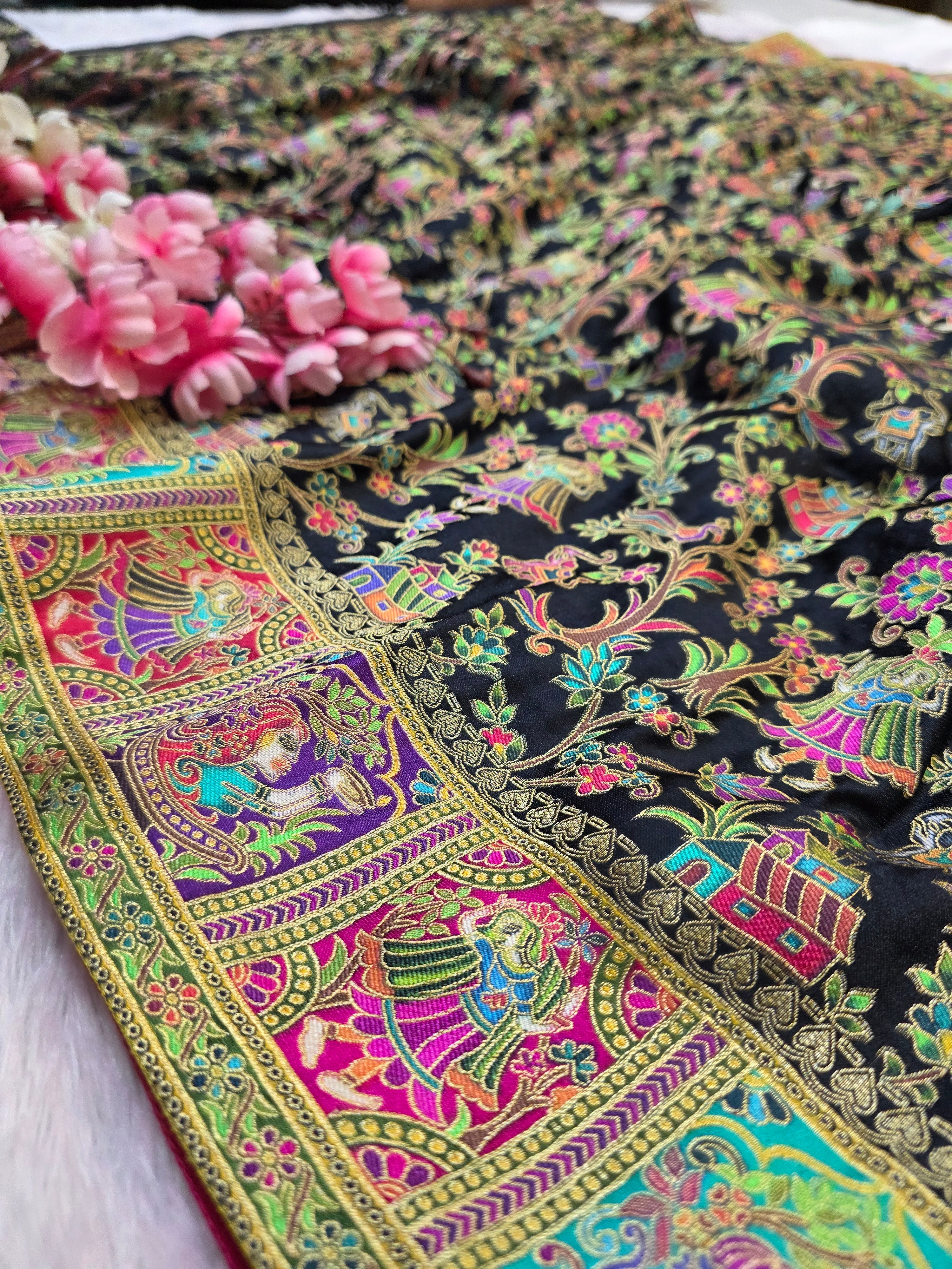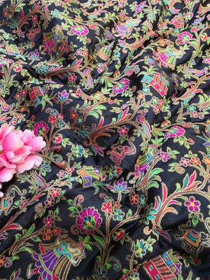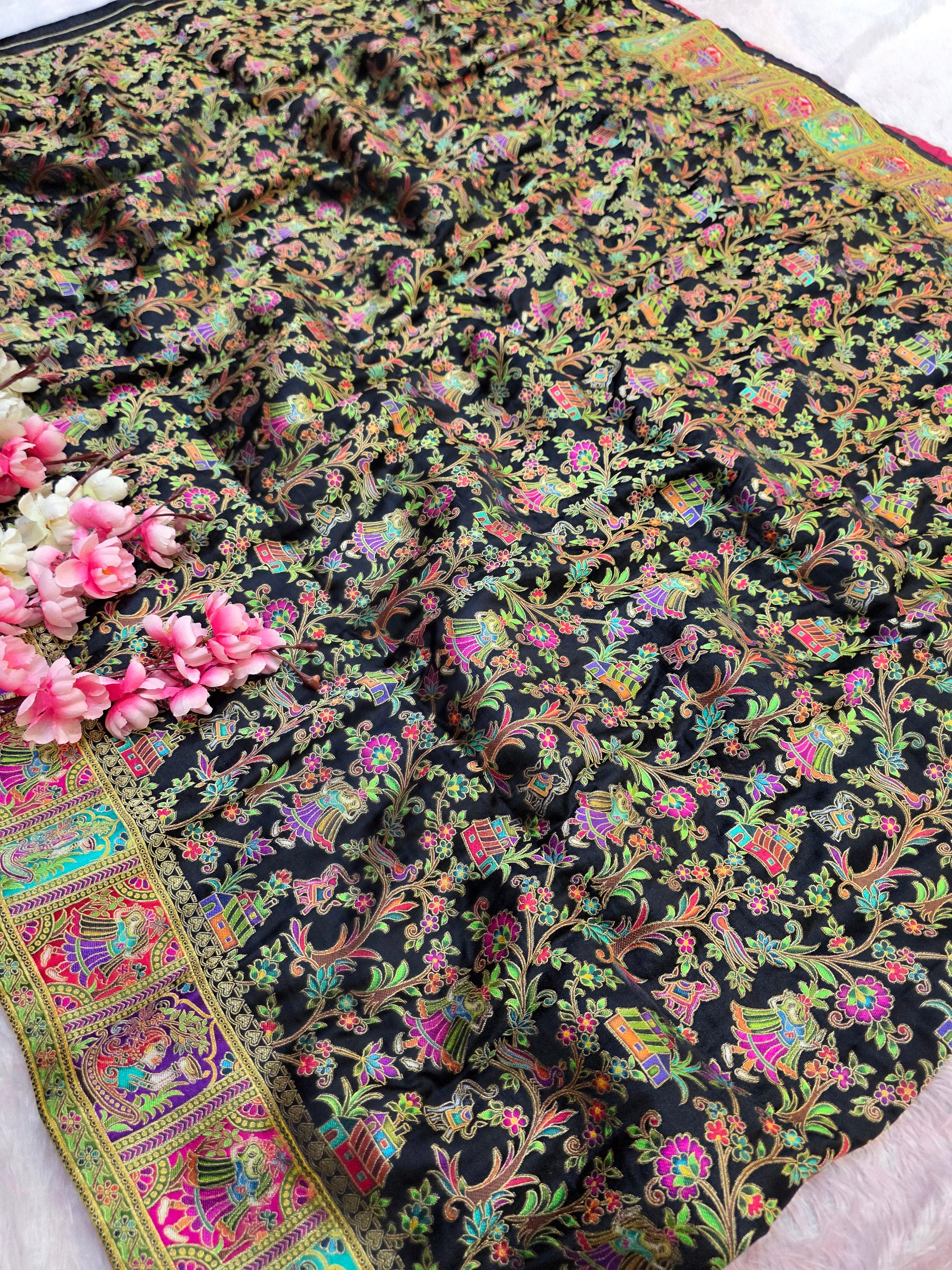 938005 Royal Kashmiri Pashmina Silk Black Saree with Heavy Blouse