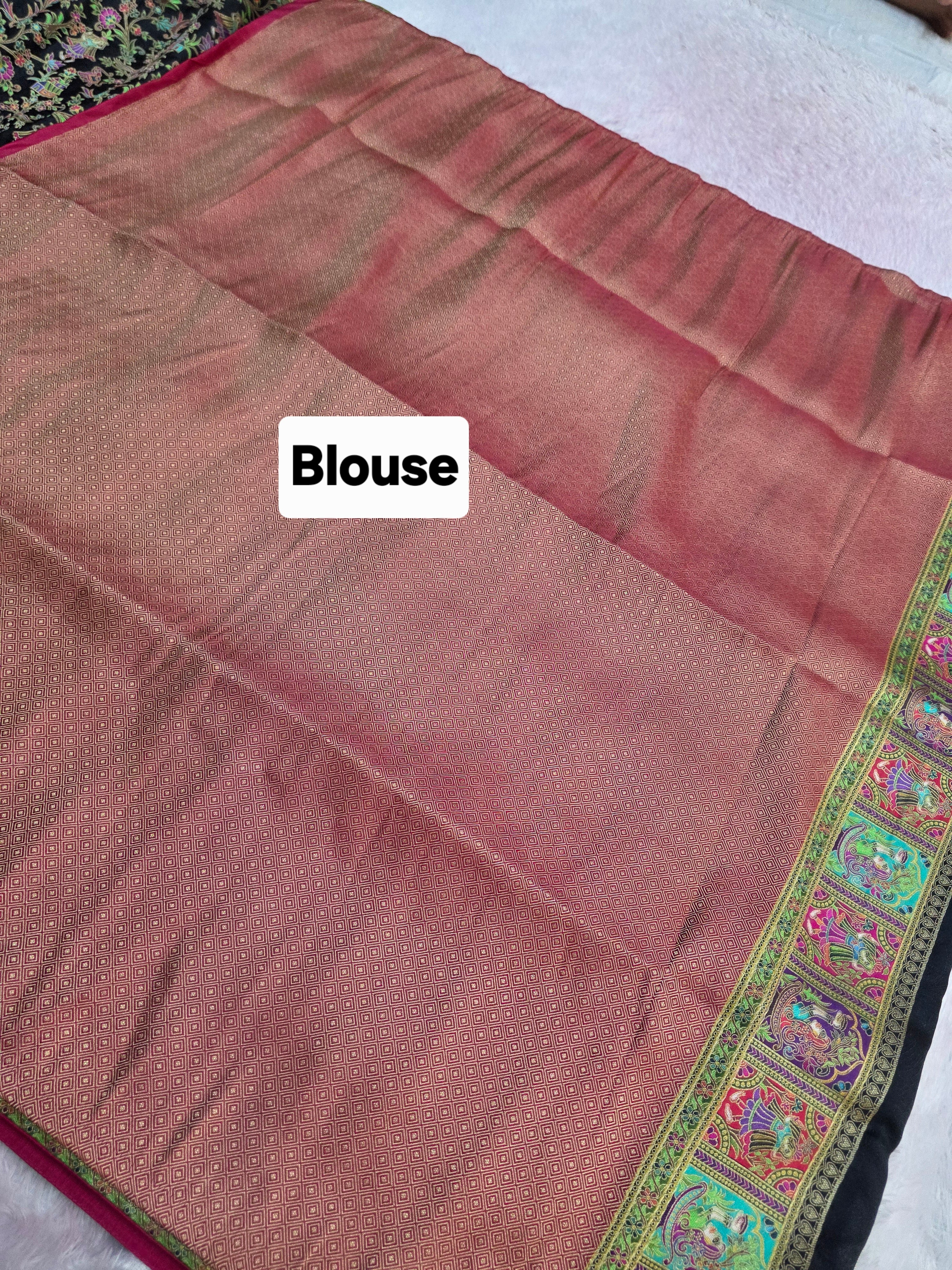 More Options: 938005 Royal Kashmiri Pashmina Silk Black Saree with Heavy Blouse