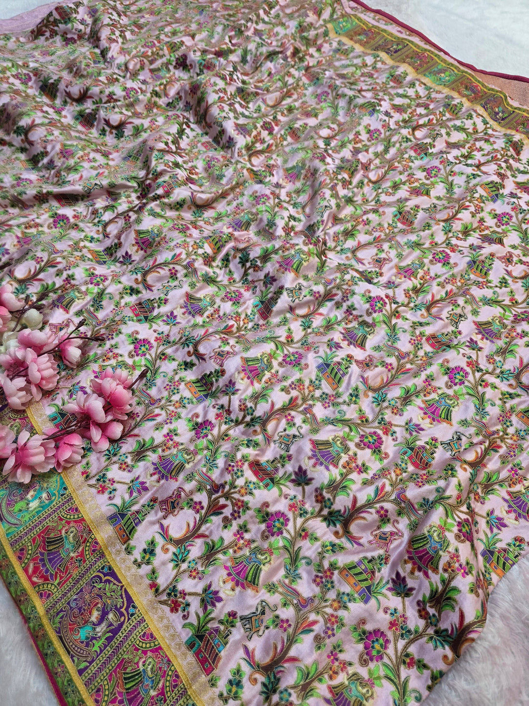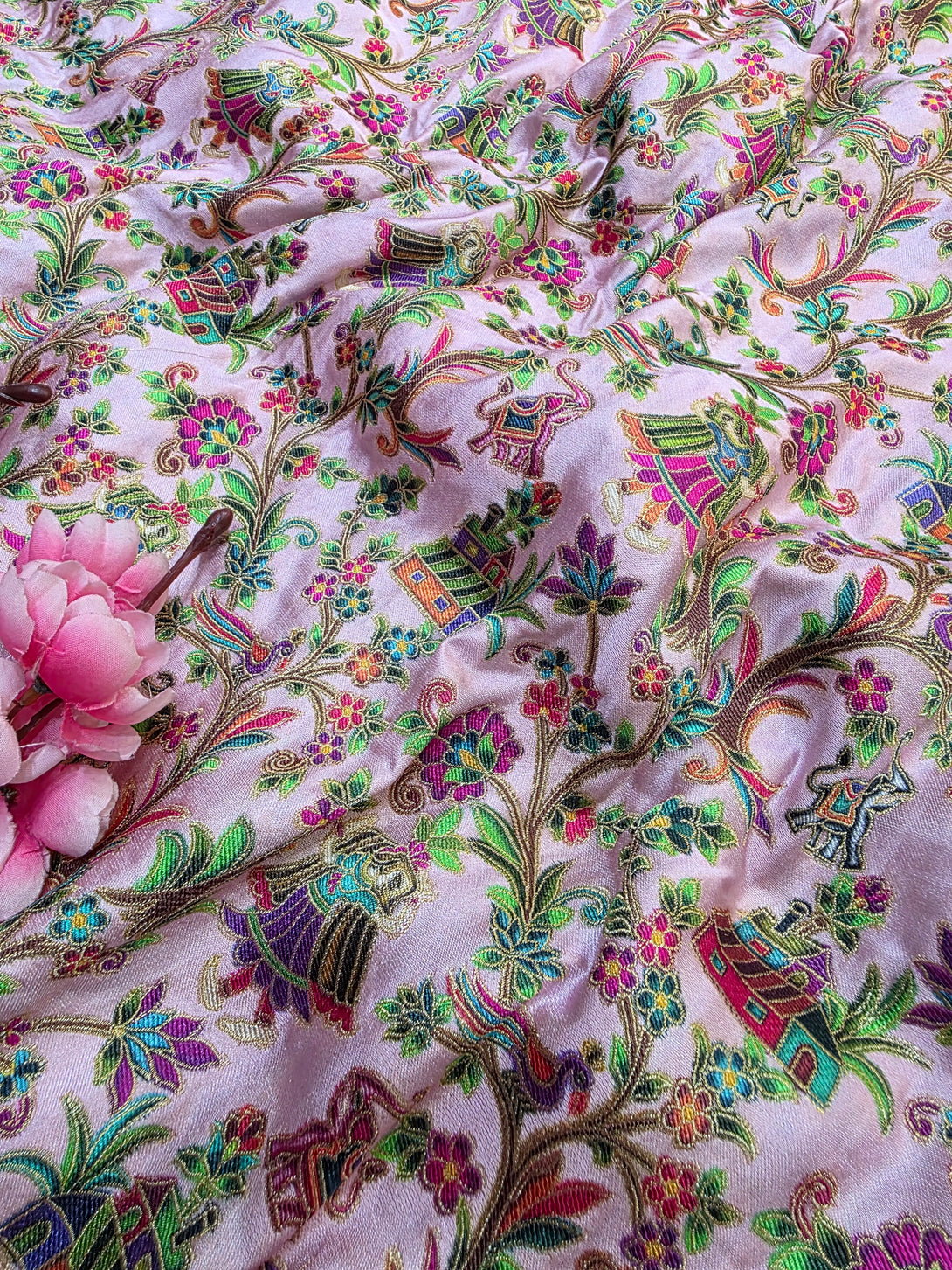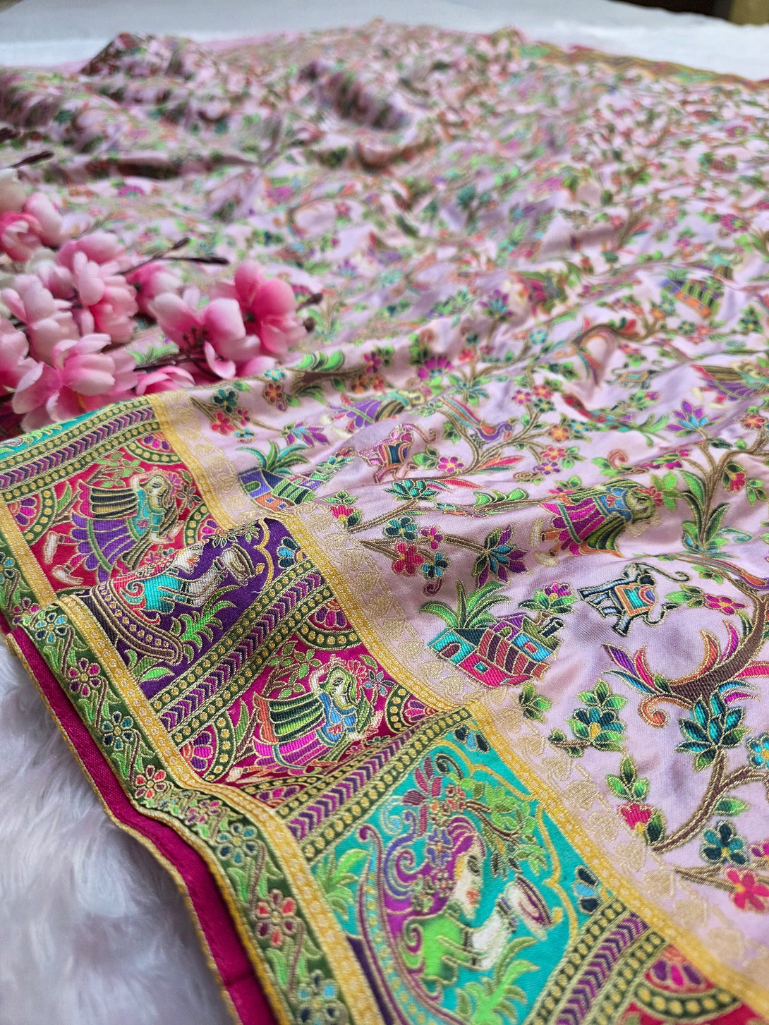 938005 Royal Kashmiri Pashmina Silk Pink Saree with Heavy Blouse
