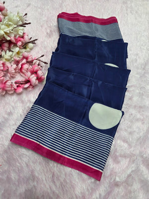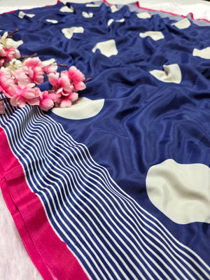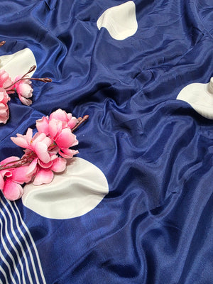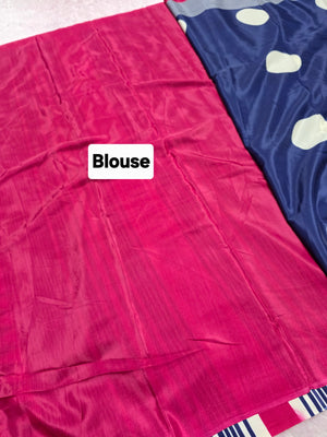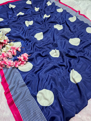 939001 Retro Style Polka Dots Print Satin Silk Saree - Blue