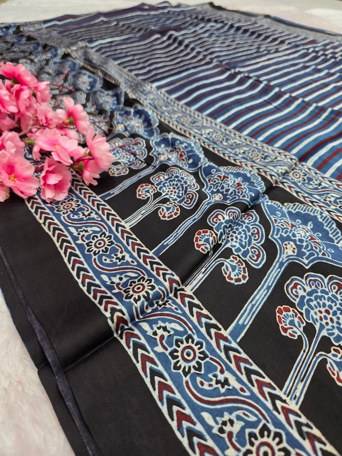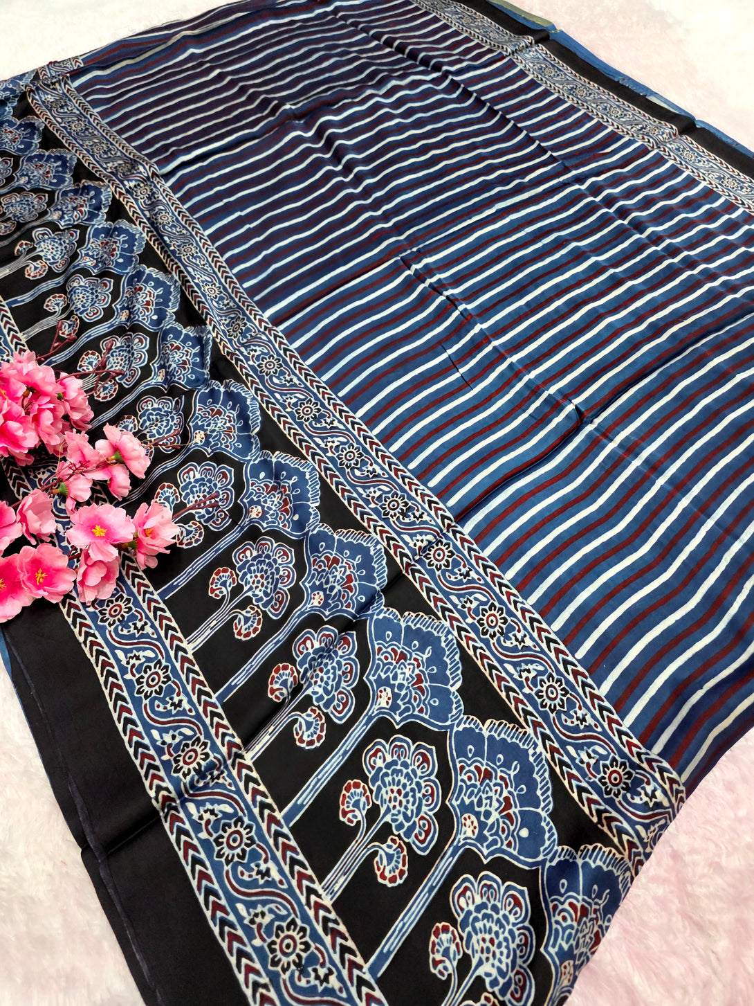 682002 ट्रेंडिंग अजरख प्रिंट इटैलियन क्रेप सिल्क साड़ी