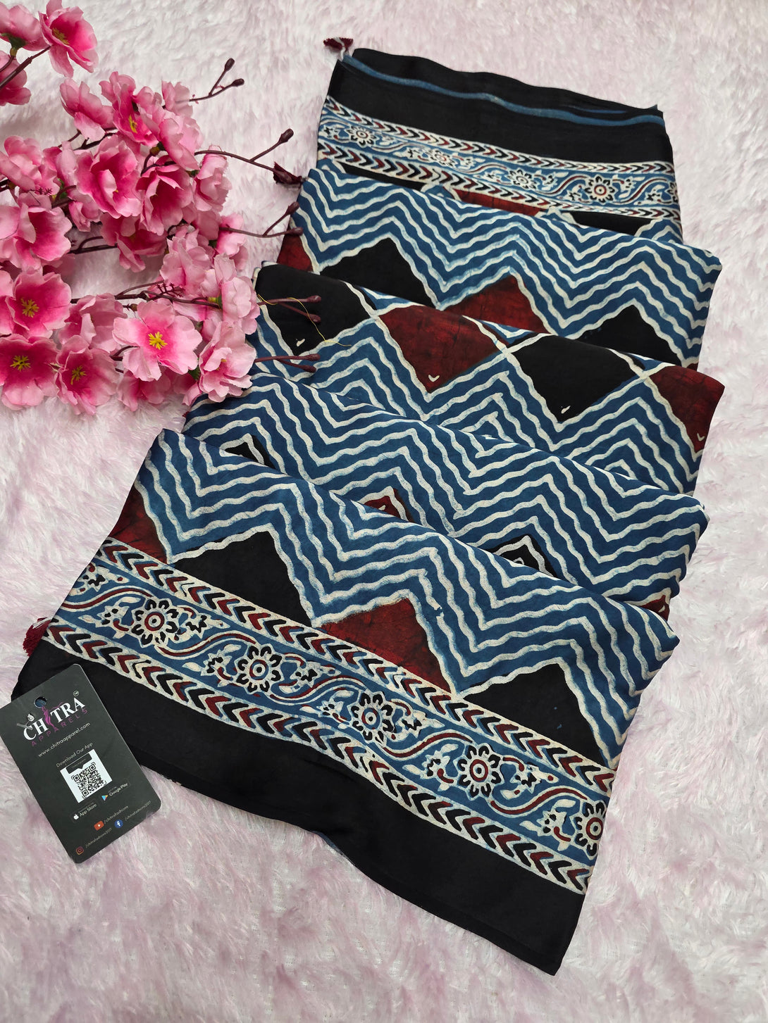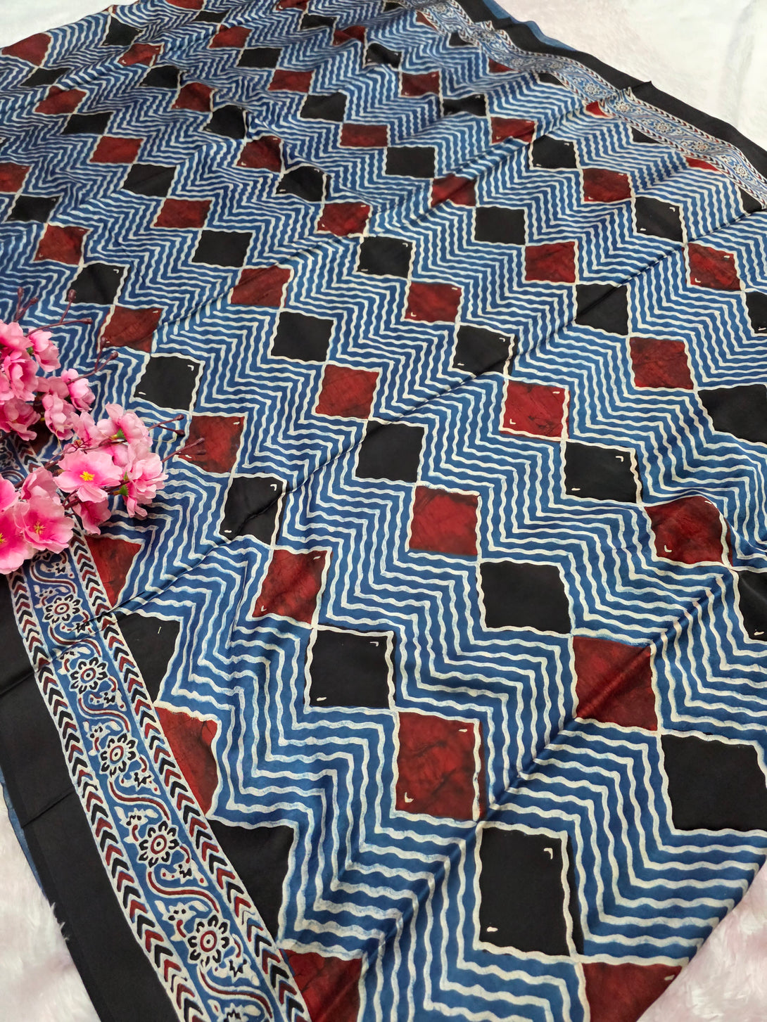682002 ट्रेंडिंग अजरख प्रिंट इटैलियन क्रेप सिल्क साड़ी