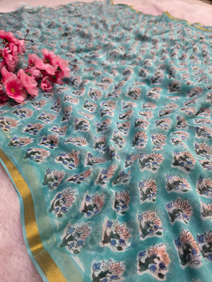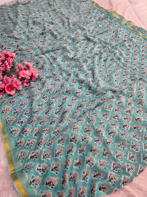 160002 भारी अनुक्रम हाथ के काम के साथ शुद्ध शिफॉन साड़ी