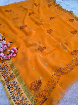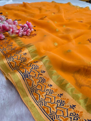 160002 भारी अनुक्रम हाथ के काम के साथ शुद्ध शिफॉन साड़ी