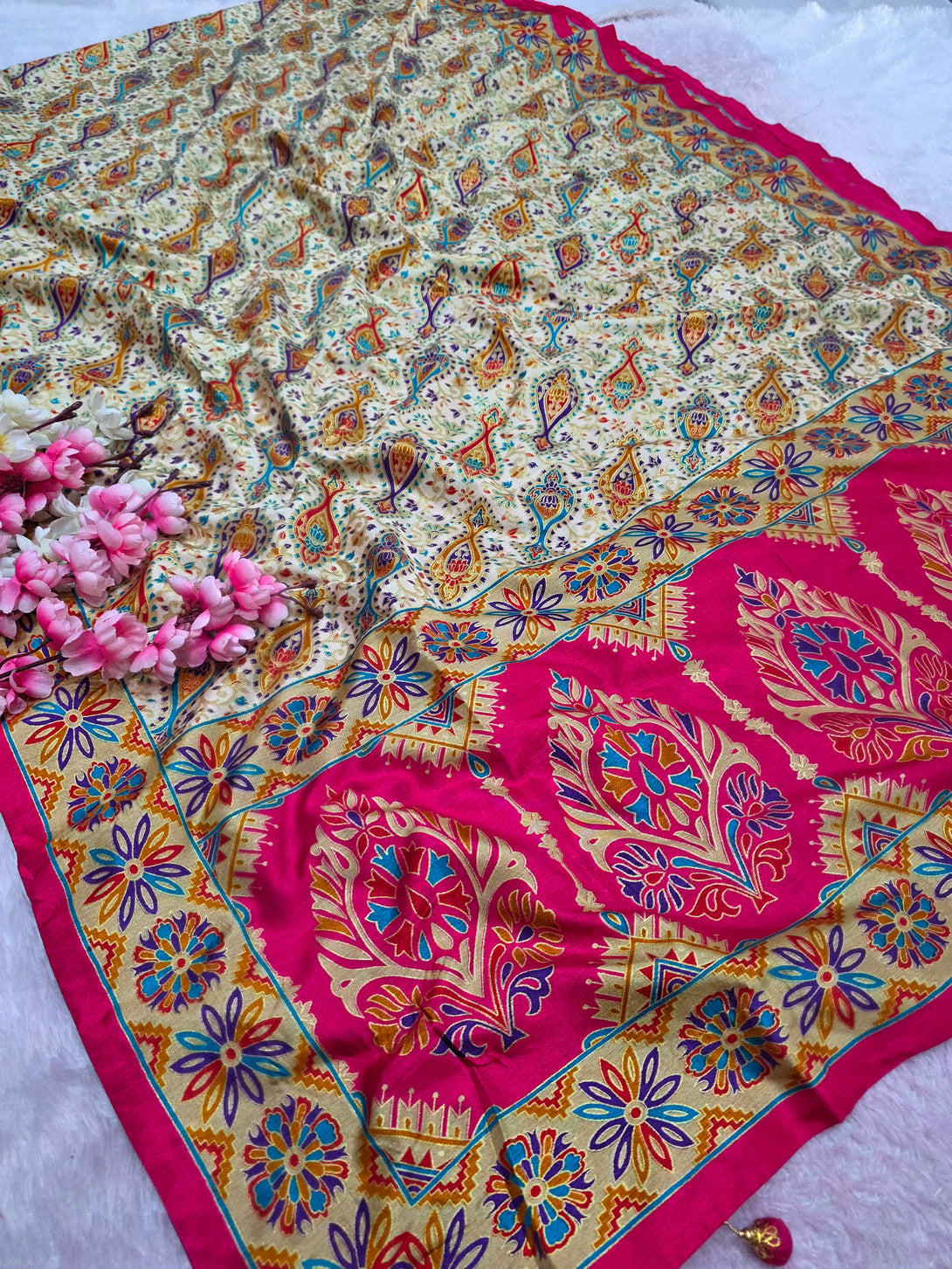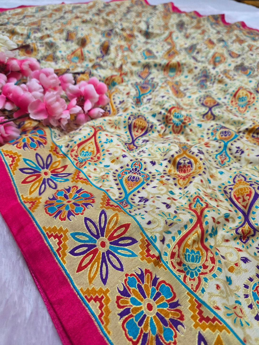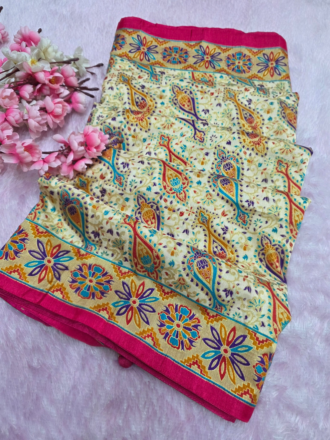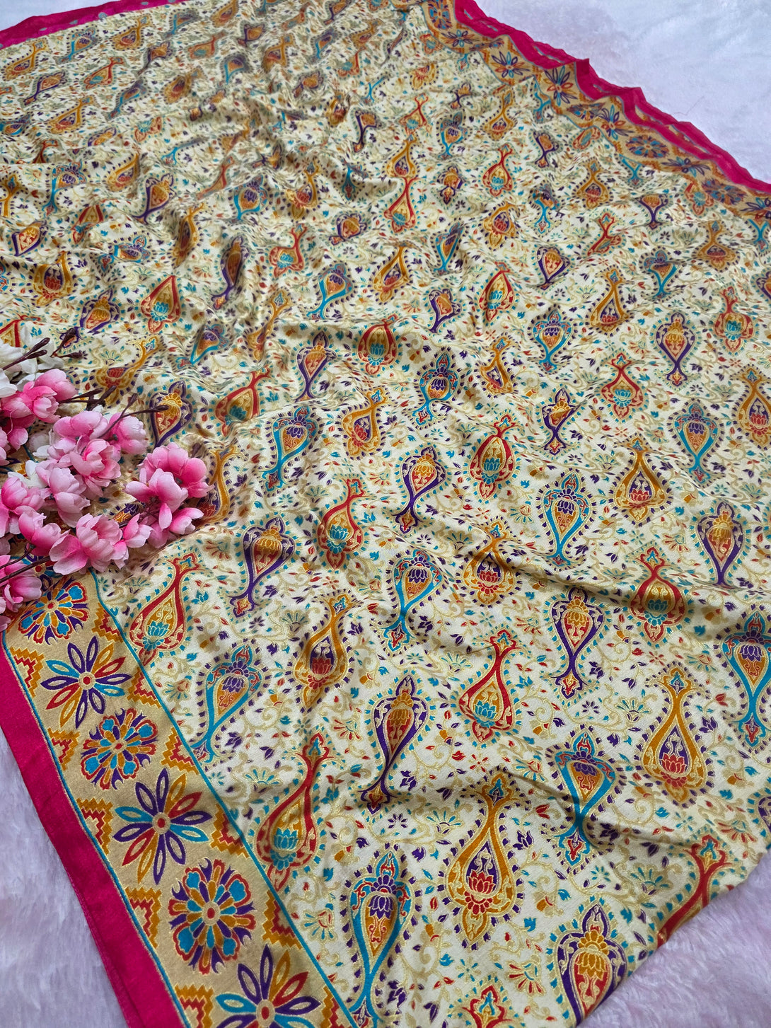 • Fabric: Semi Dola Silk with Kashmiri Print