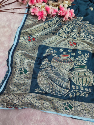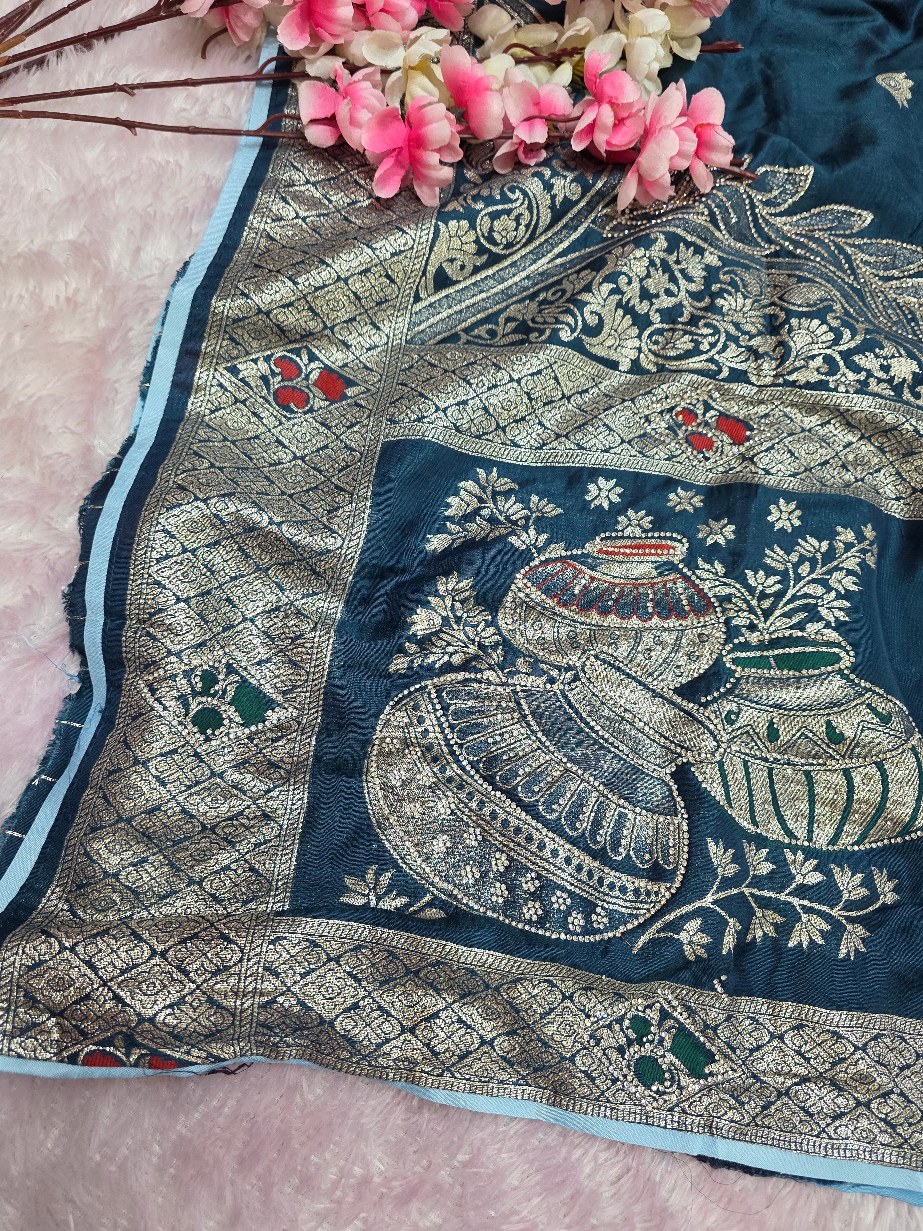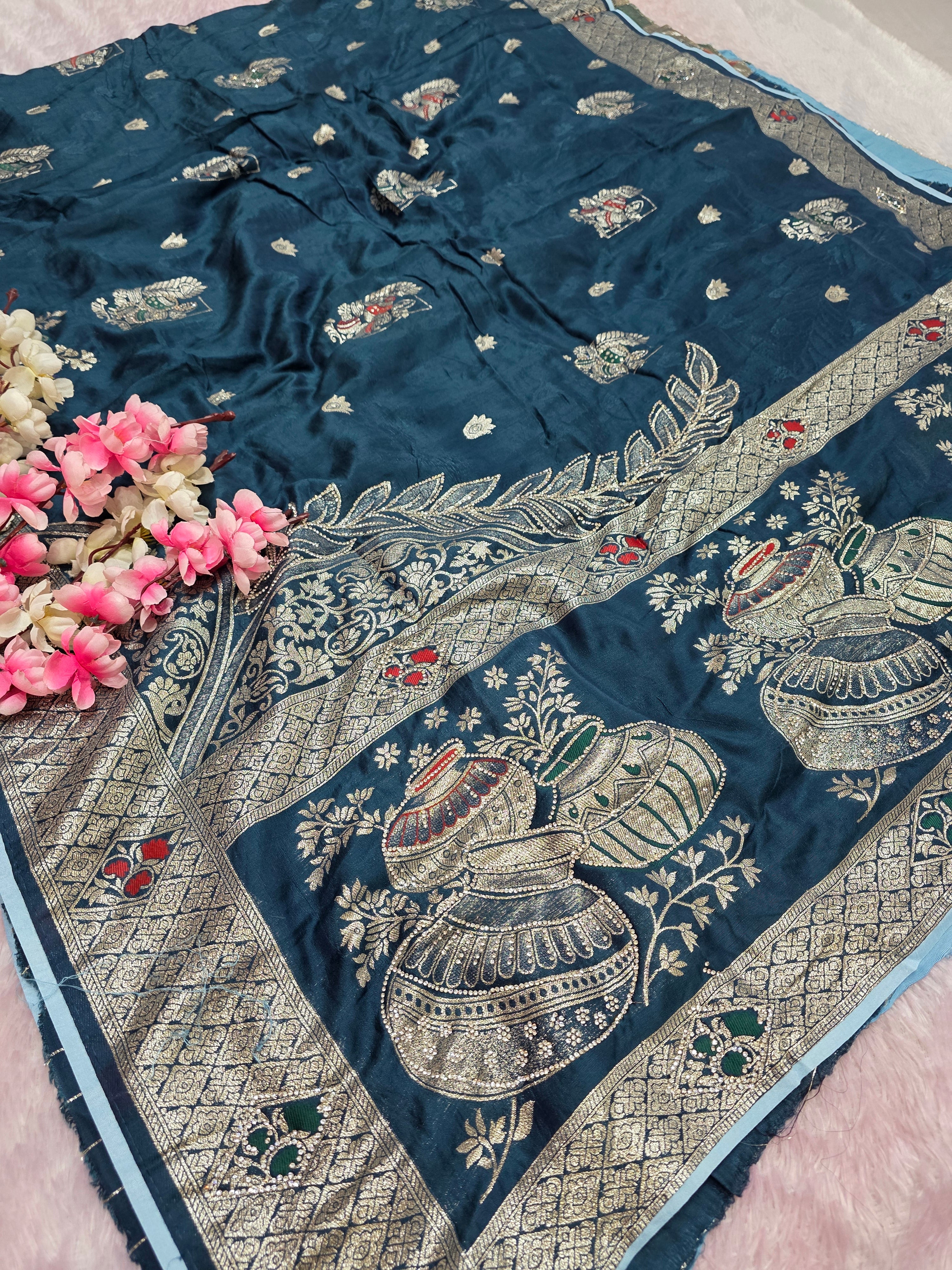 शुद्ध टसर सिल्क हाथ से बनी लेहरिया साड़ी प्रीमियम गोटापट्टी वर्क के साथ - 8837