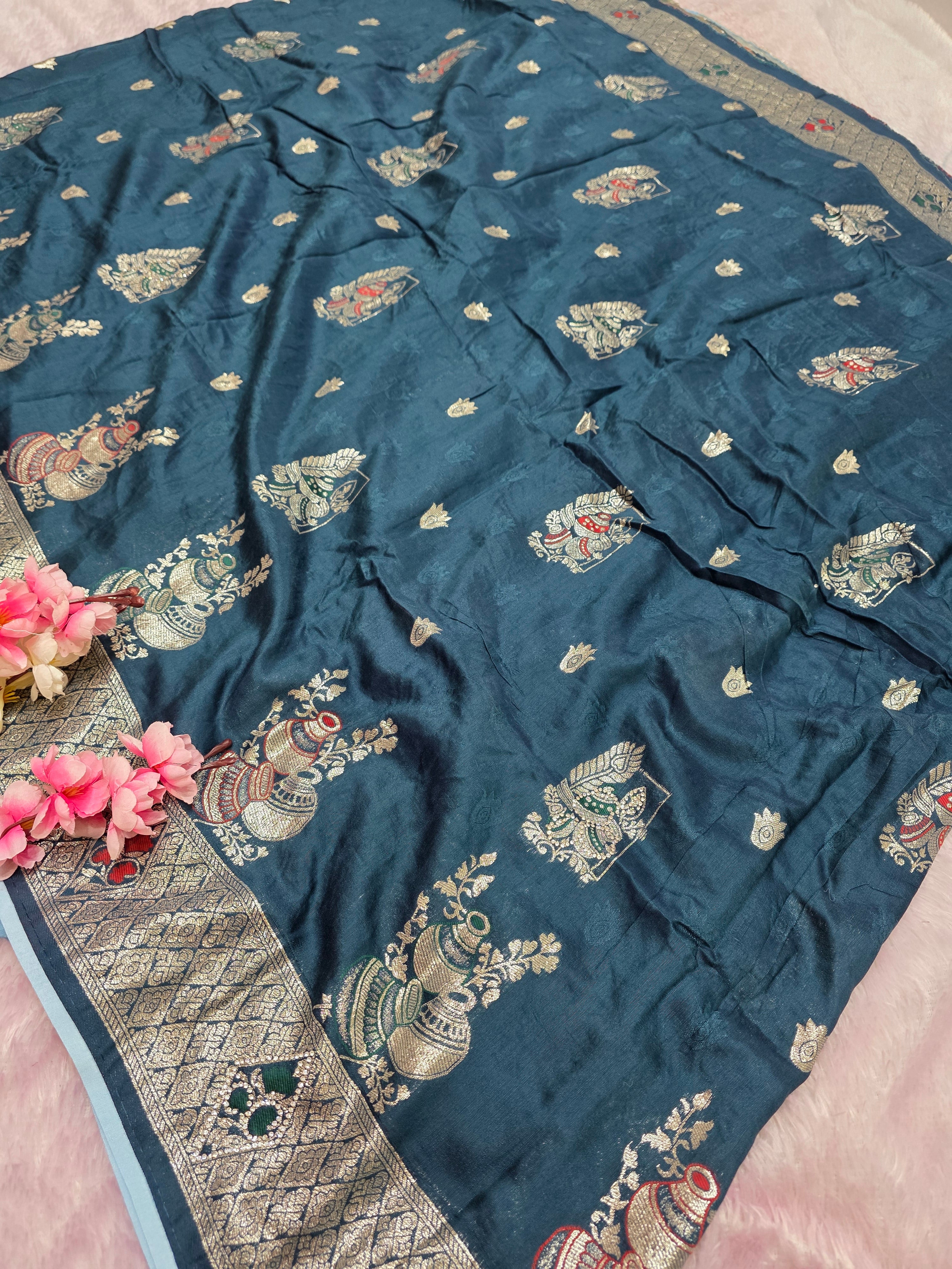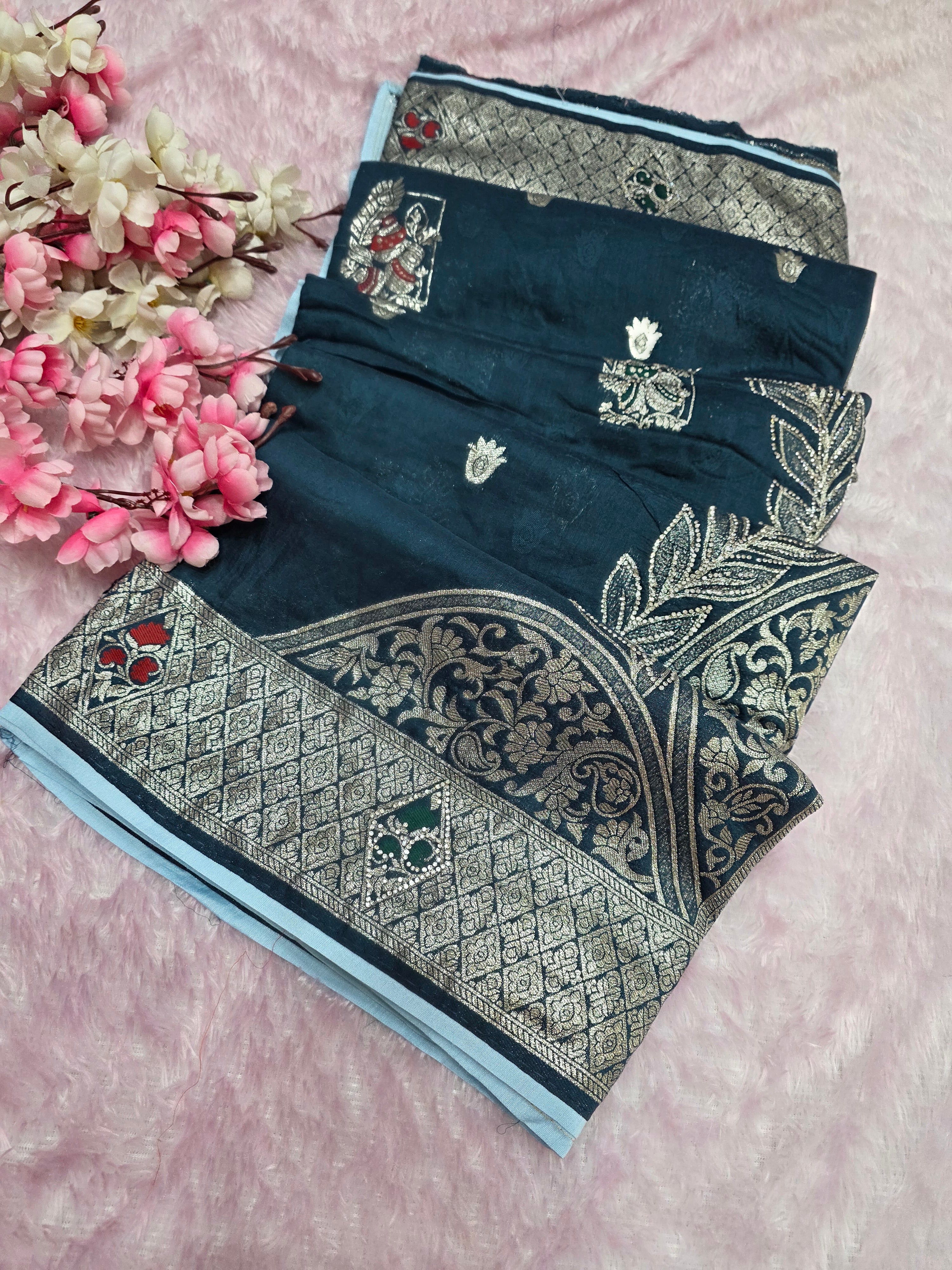 टिप्पणी : कैमरे और स्क्रीन में रंग प्रजनन के कारण साड़ी में हल्का रंग भिन्नता हो सकती है।