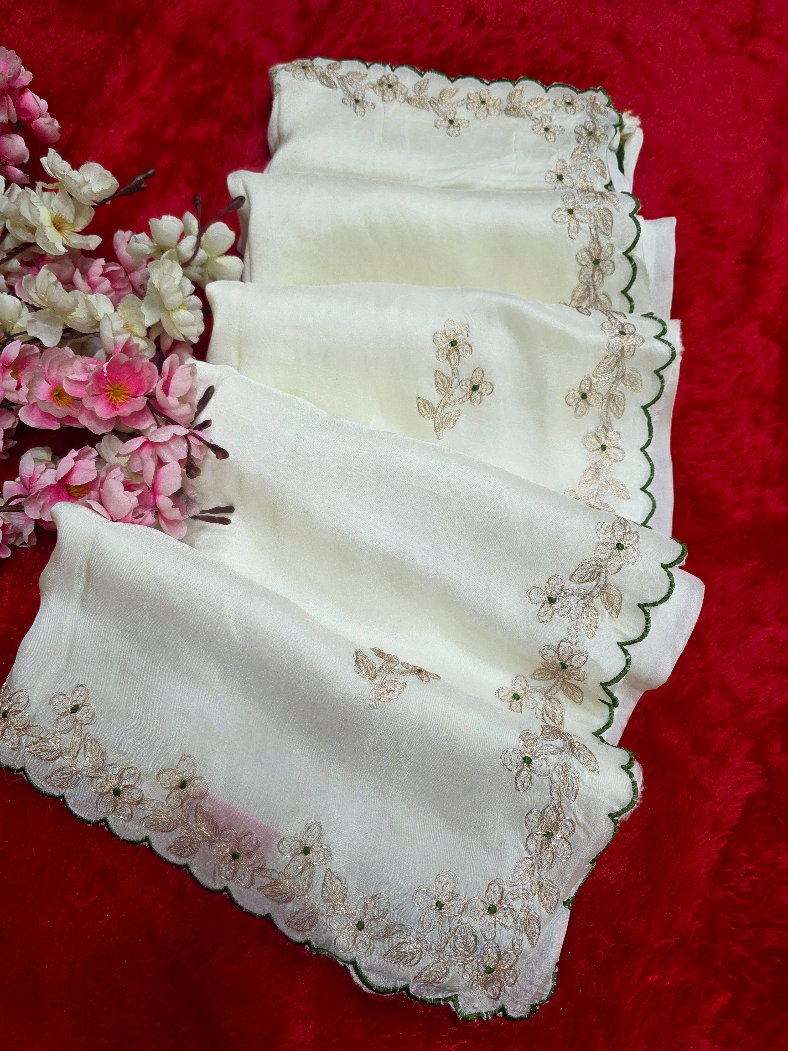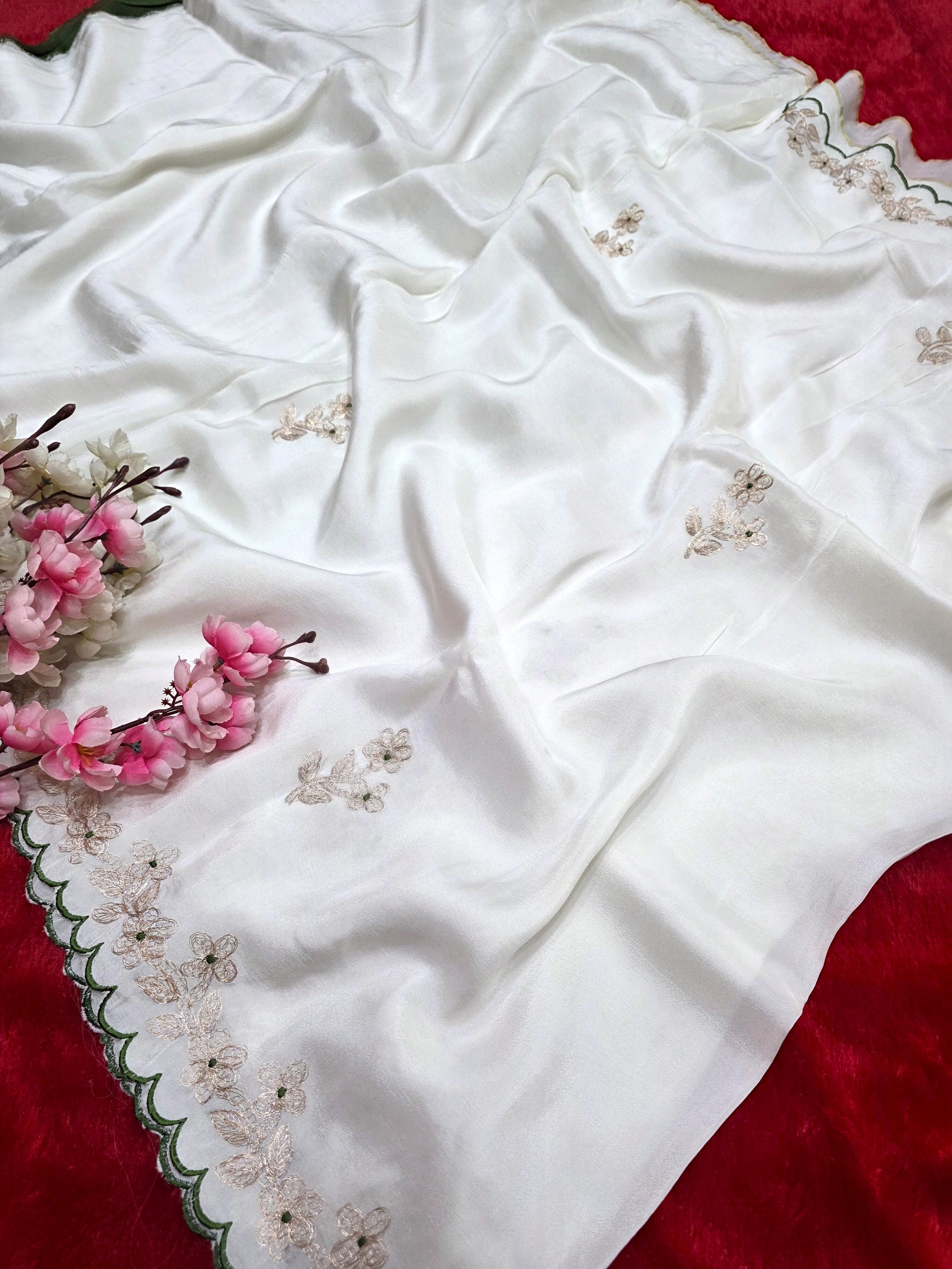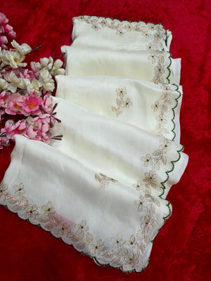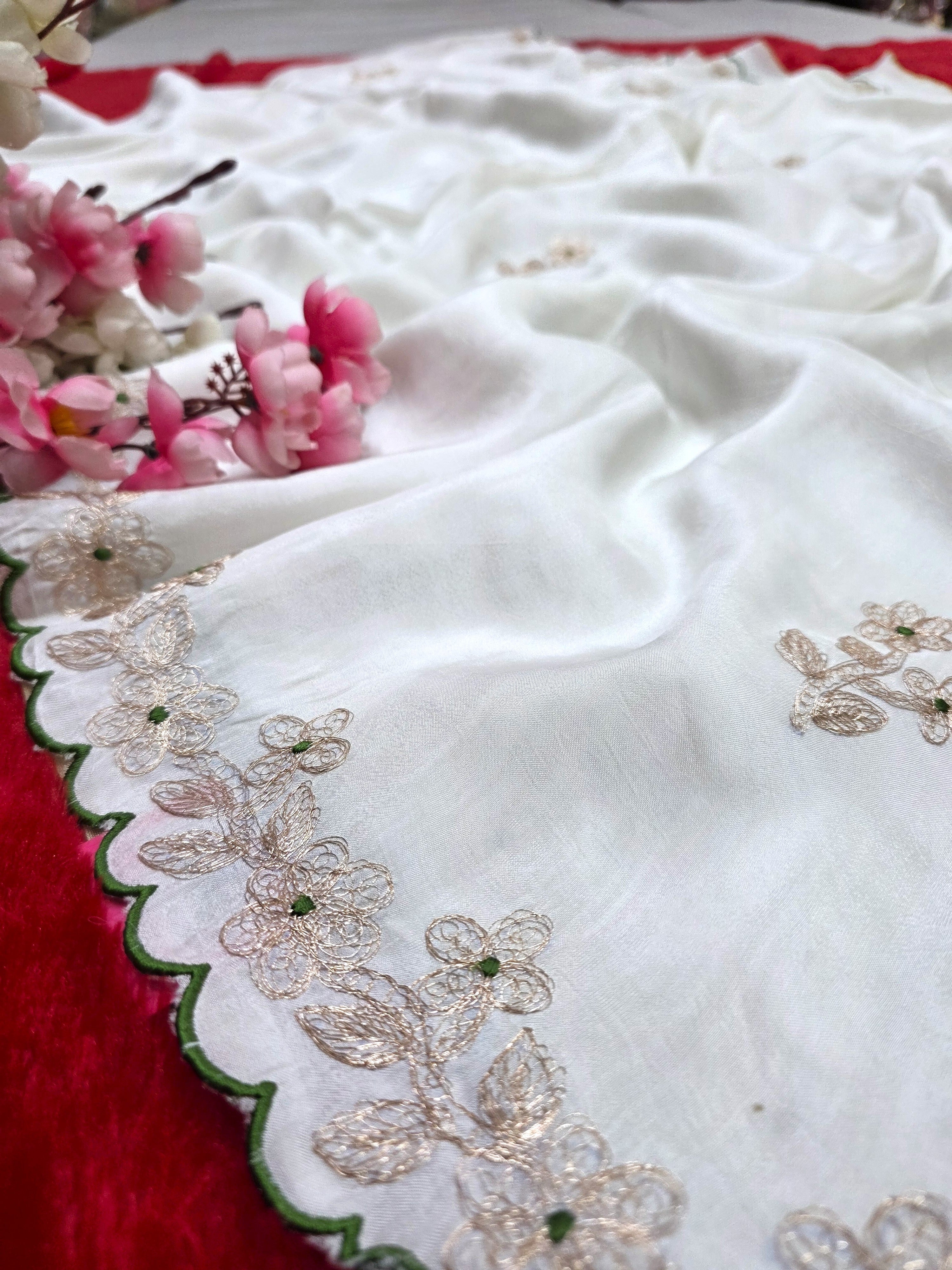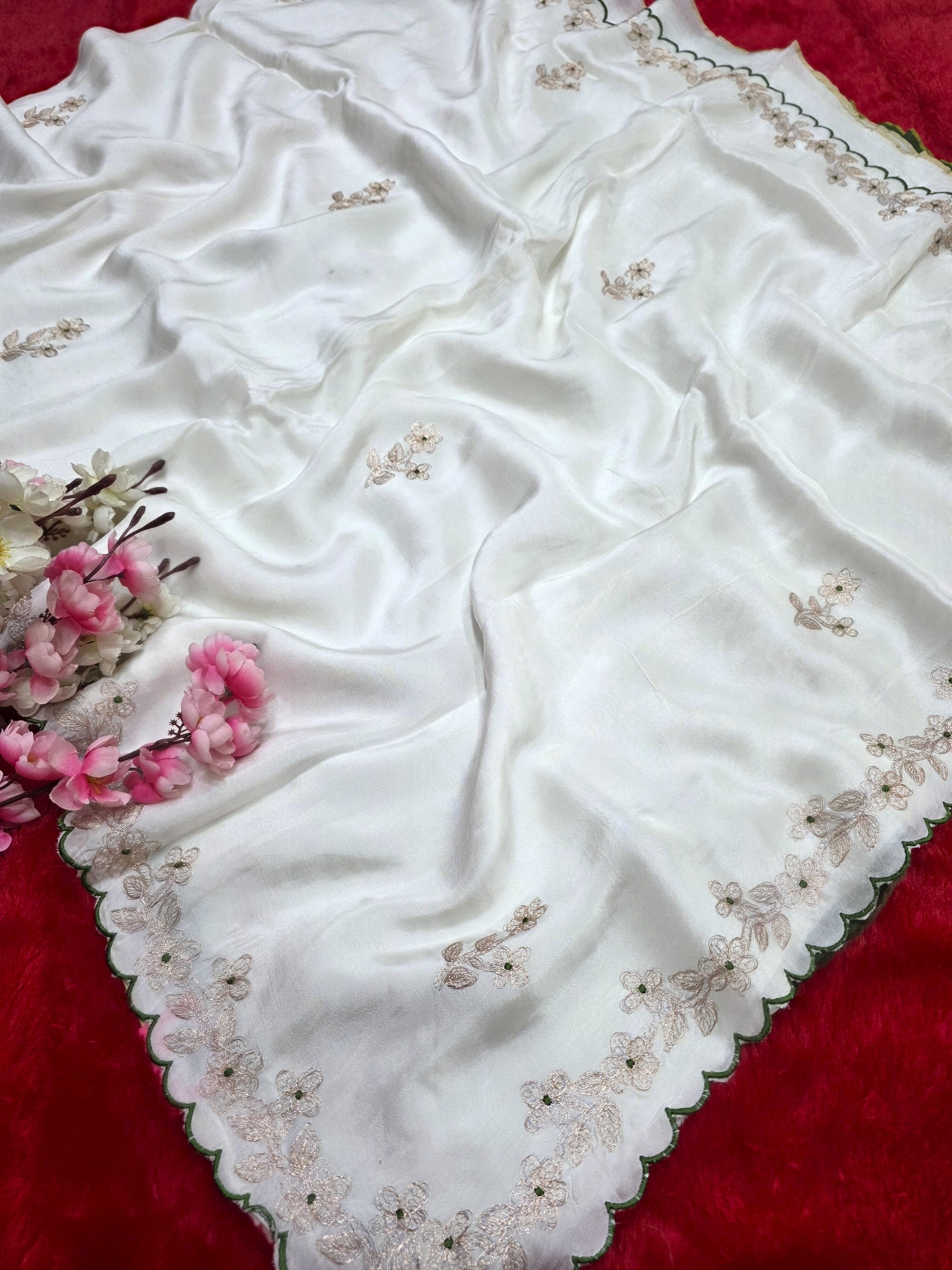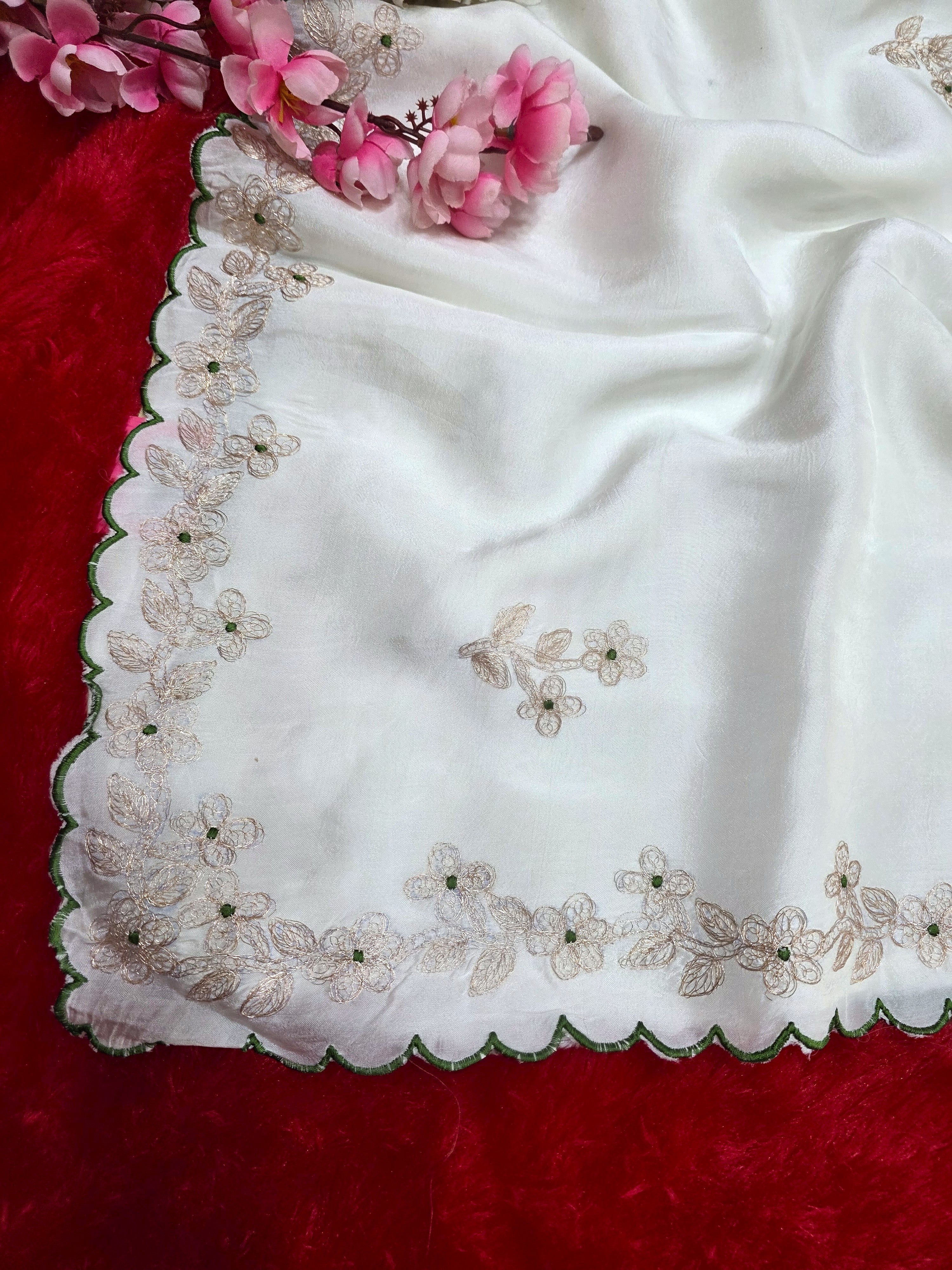 9649 Designer Pita Work Pure Pure Dola Silk White Saree