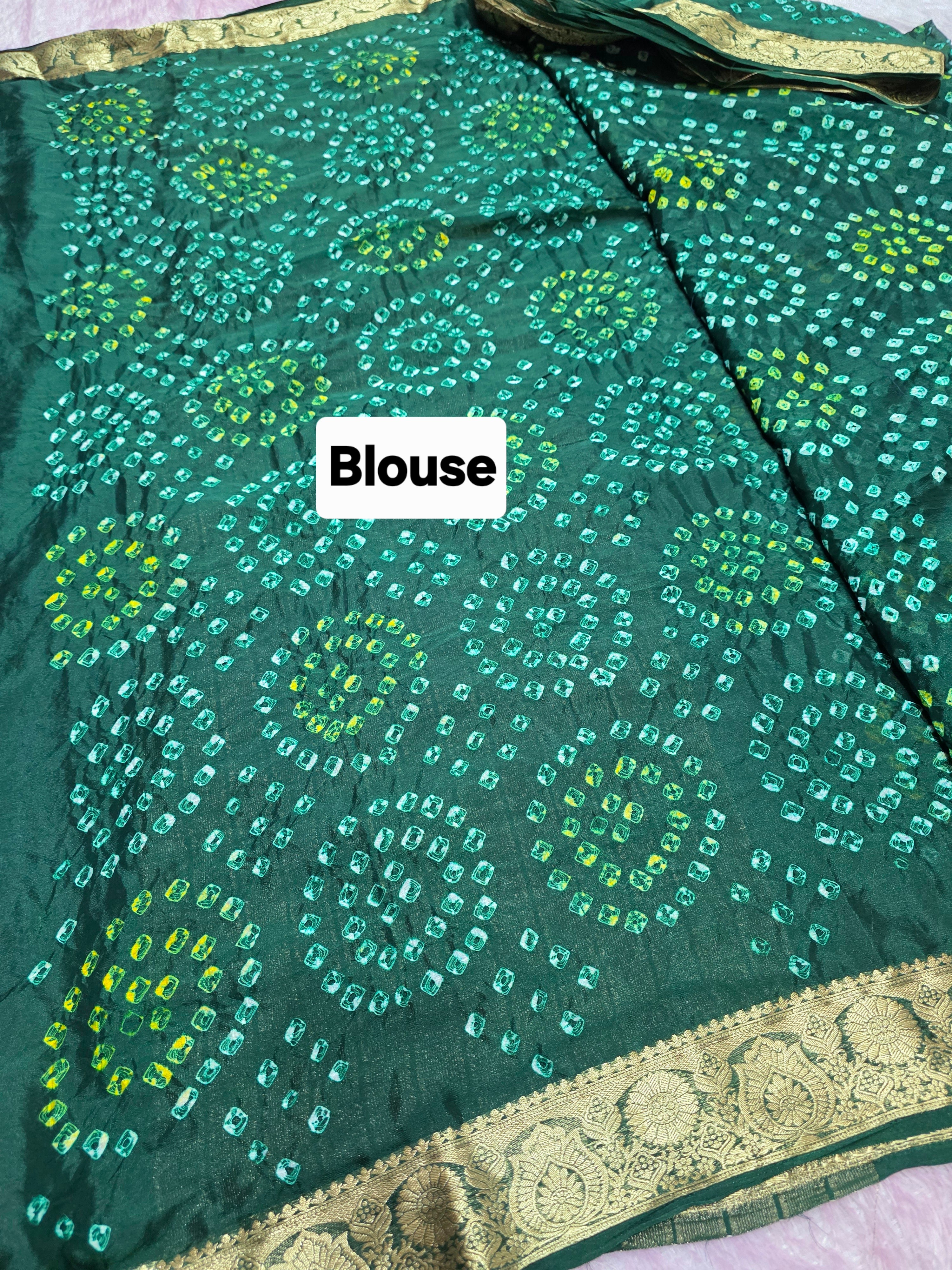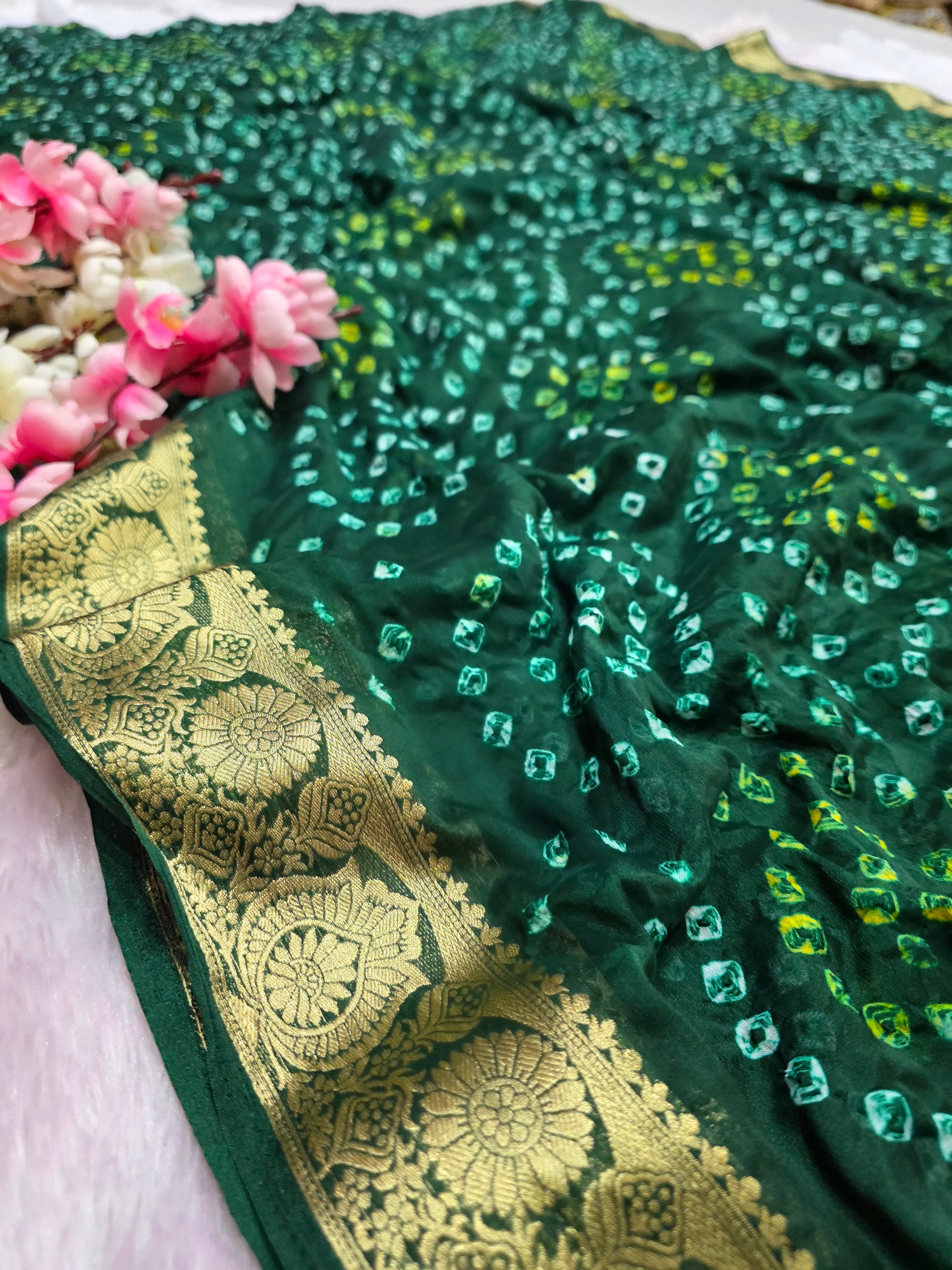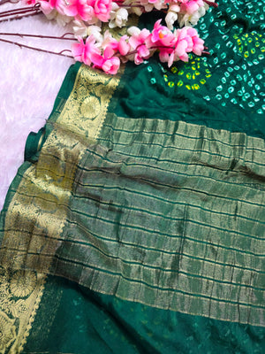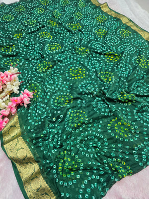 966002 Traditional Hand Bandhani Chinon Silk Soft Saree - Green