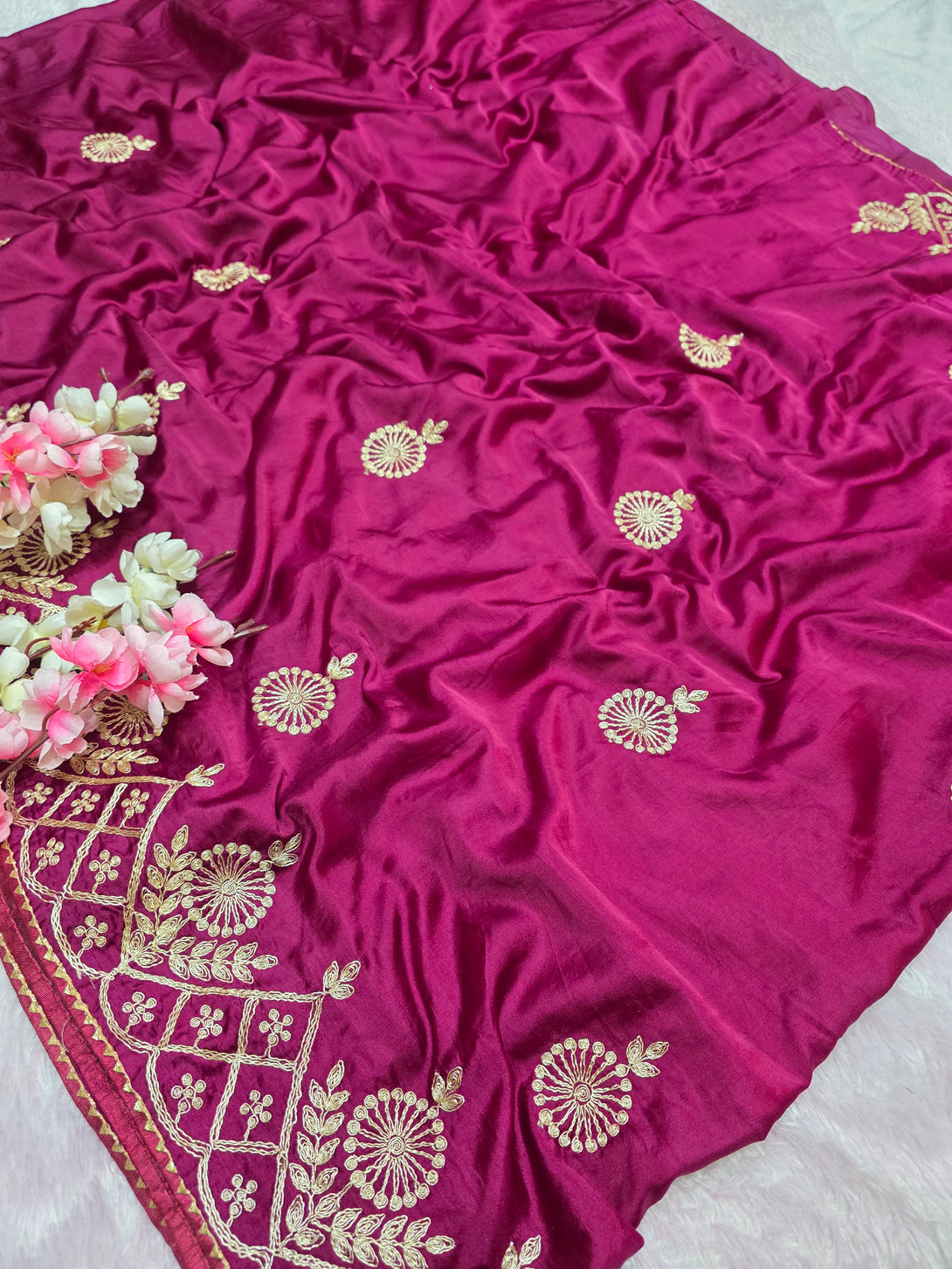 698008 फ्लावर प्रिंट इटैलियन क्रेप सिल्क साड़ी