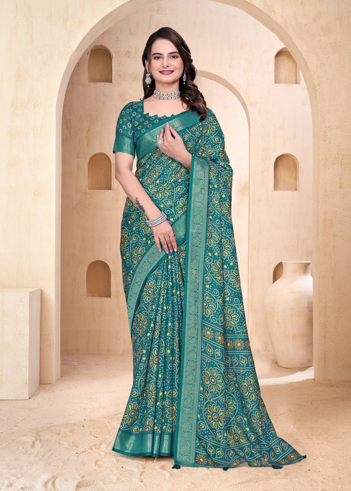- Style: Bandhani, Printed, Traditional