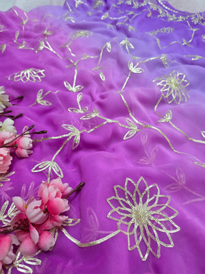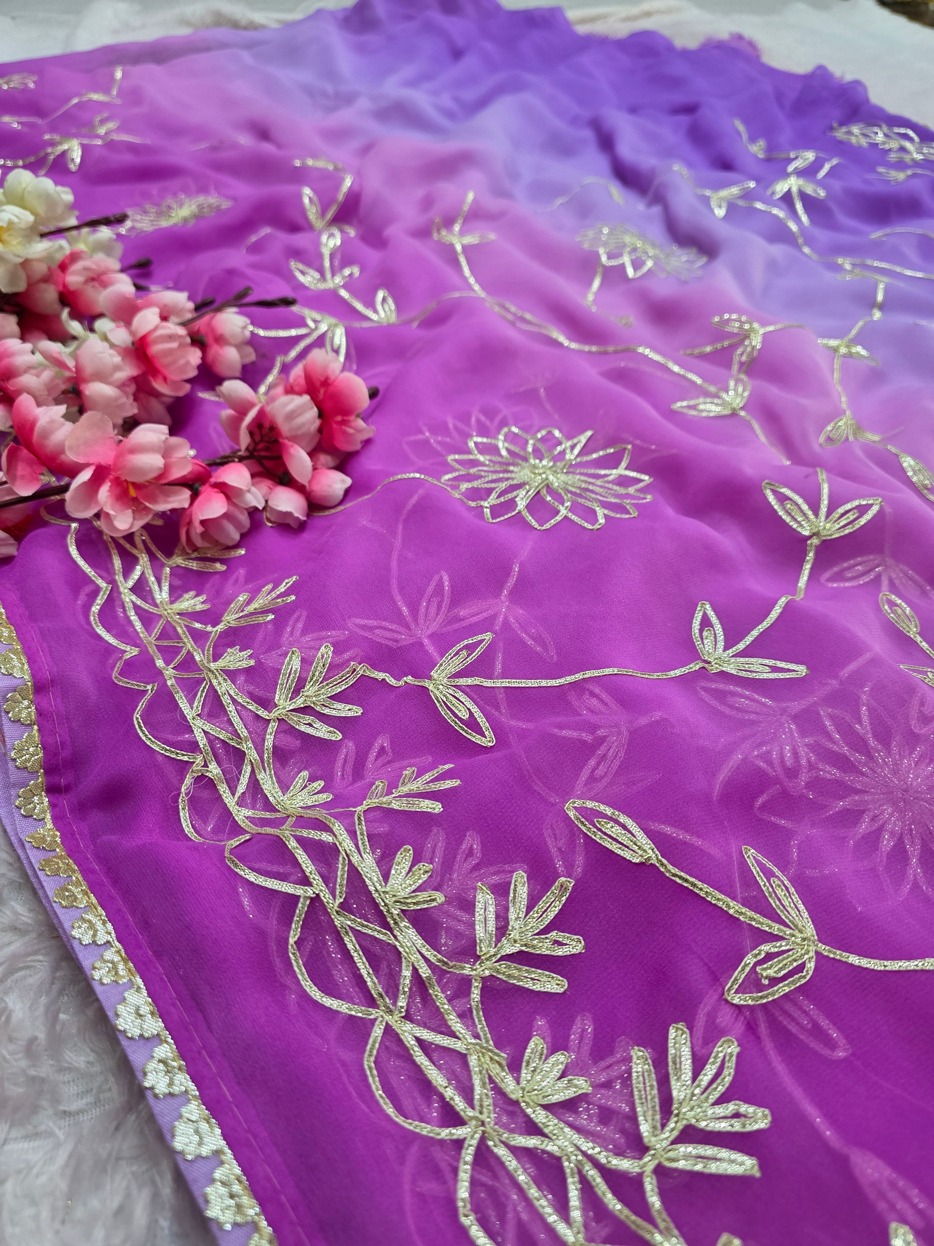 More Options: 969003 Rajwadi Party Wear Royal Georgette Saree with Gotapatti Work - Lavender Purple