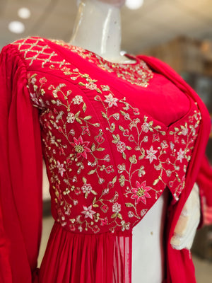 9841 Premium Hand Cutdana Work Pure Georgette Designer Dress with Skirt and Dupatta