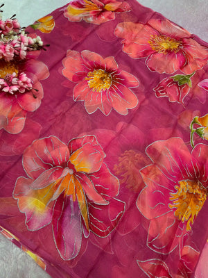 644001 एक्सक्लूसिव शिफॉन फ्लावर प्रिंट साड़ी - हरा