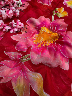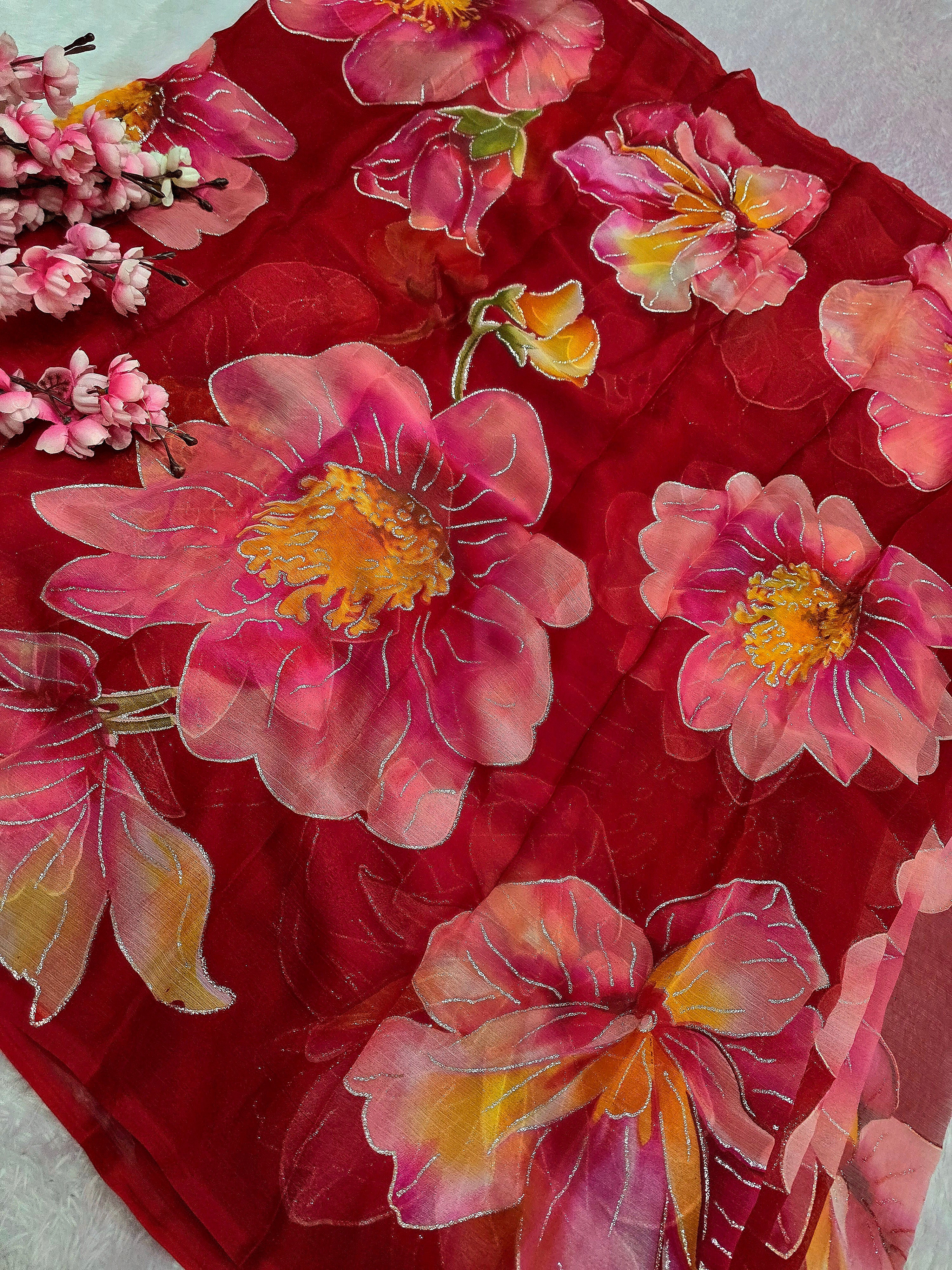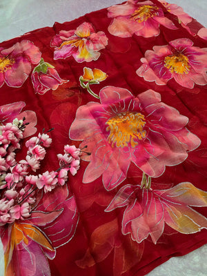 644001 एक्सक्लूसिव शिफॉन फ्लावर प्रिंट साड़ी - हरा