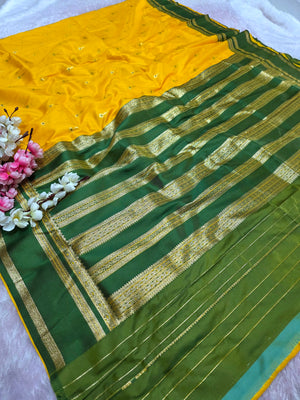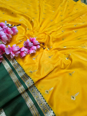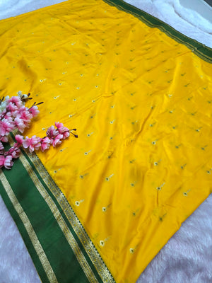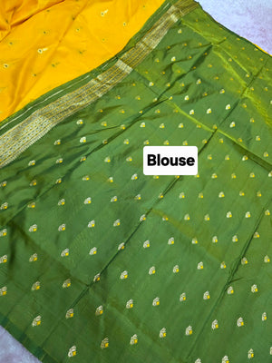 992005 Banarasi Soft Silk Saree with Small Buti - Yellow Green