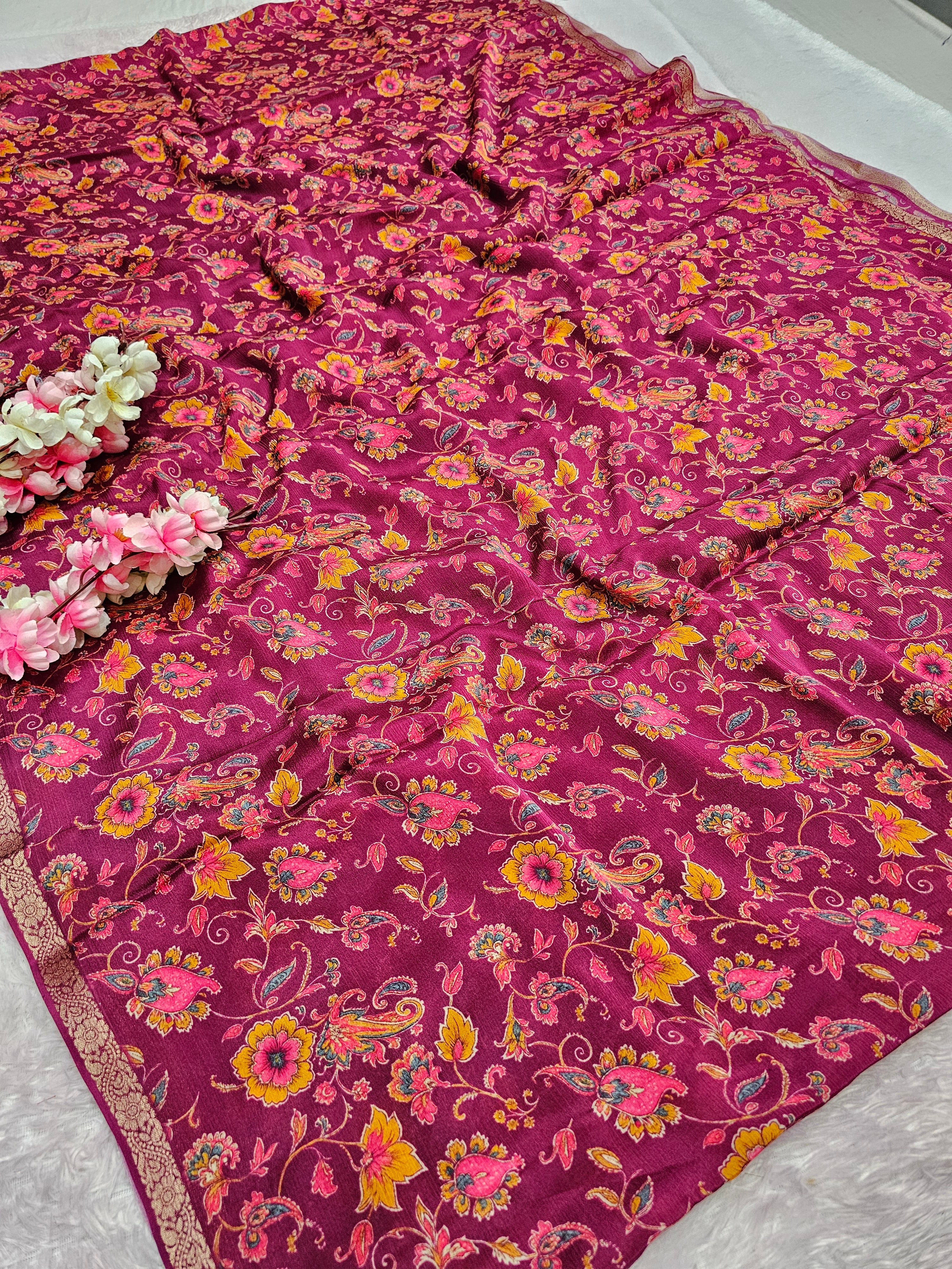 टिप्पणी : कैमरे और स्क्रीन में रंग प्रजनन के कारण साड़ी में हल्का रंग भिन्नता हो सकती है।