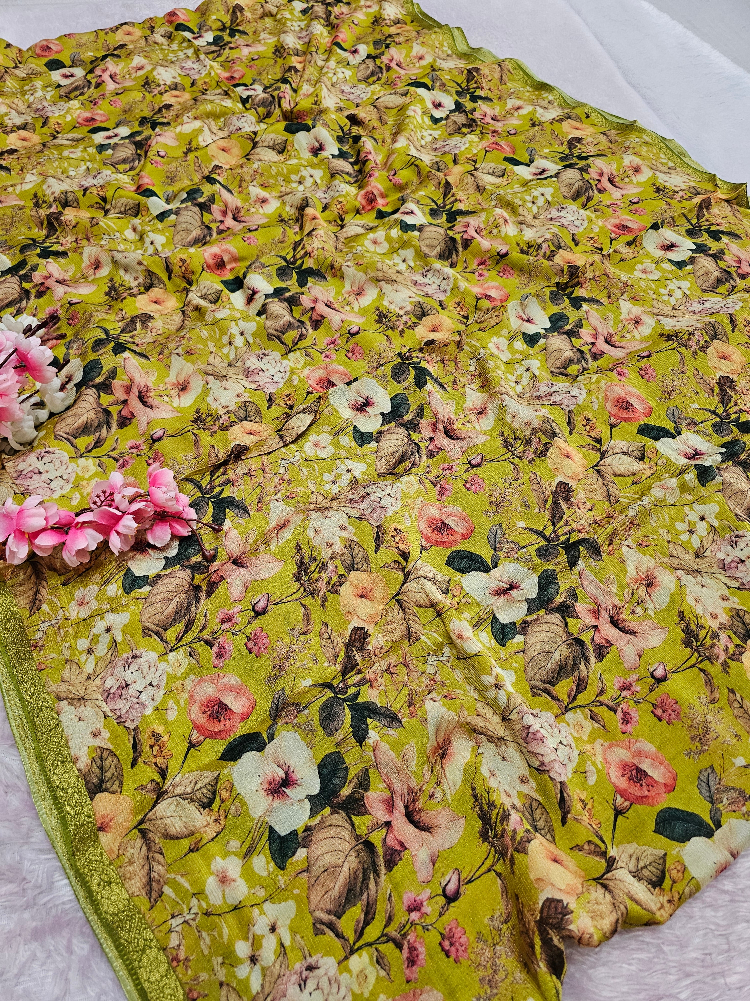 टिप्पणी : कैमरे और स्क्रीन में रंग प्रजनन के कारण साड़ी में हल्का रंग भिन्नता हो सकती है।