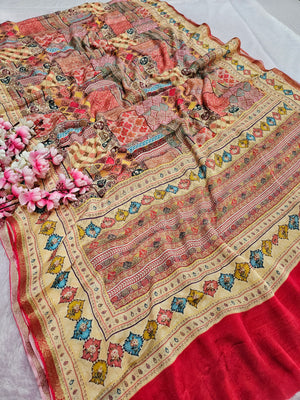 शुद्ध टसर सिल्क हाथ से बनी लेहरिया साड़ी प्रीमियम गोटापट्टी वर्क के साथ - 8837