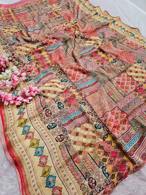 टिप्पणी : कैमरे और स्क्रीन में रंग प्रजनन के कारण साड़ी में हल्का रंग भिन्नता हो सकती है।