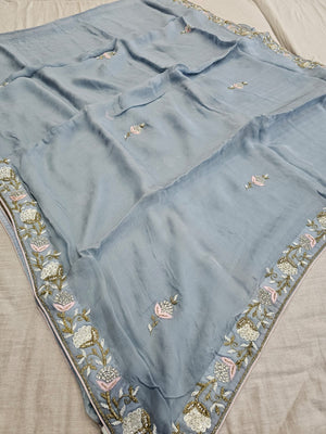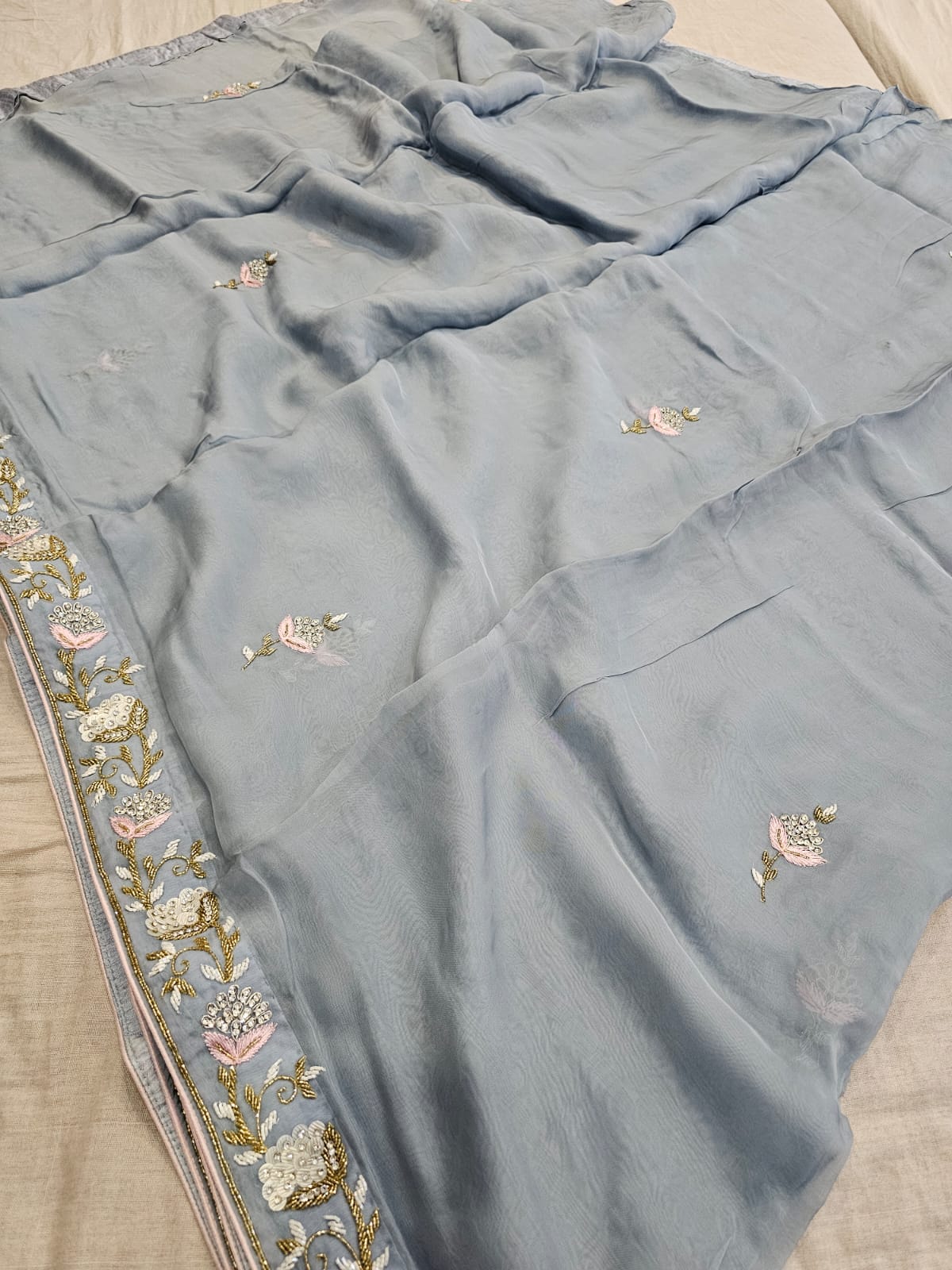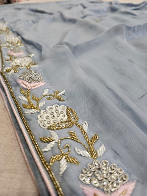 C74005 Elegant Pure Organza Saree Hand Embroidered with Diamond and Cutdana