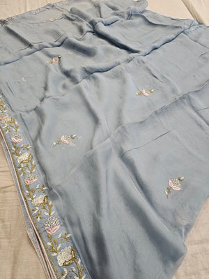 Home C74005 Elegant Pure Organza Saree Hand Embroidered with Diamond and Cutdana
