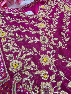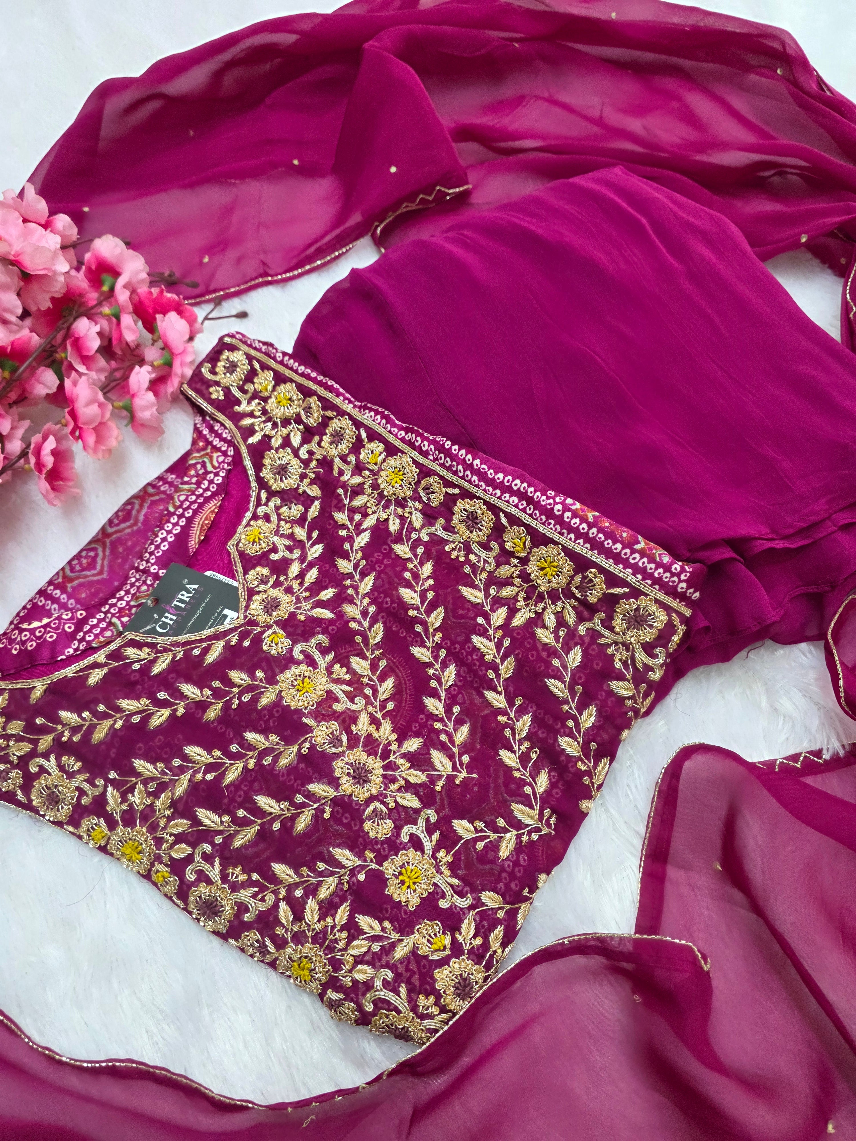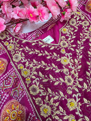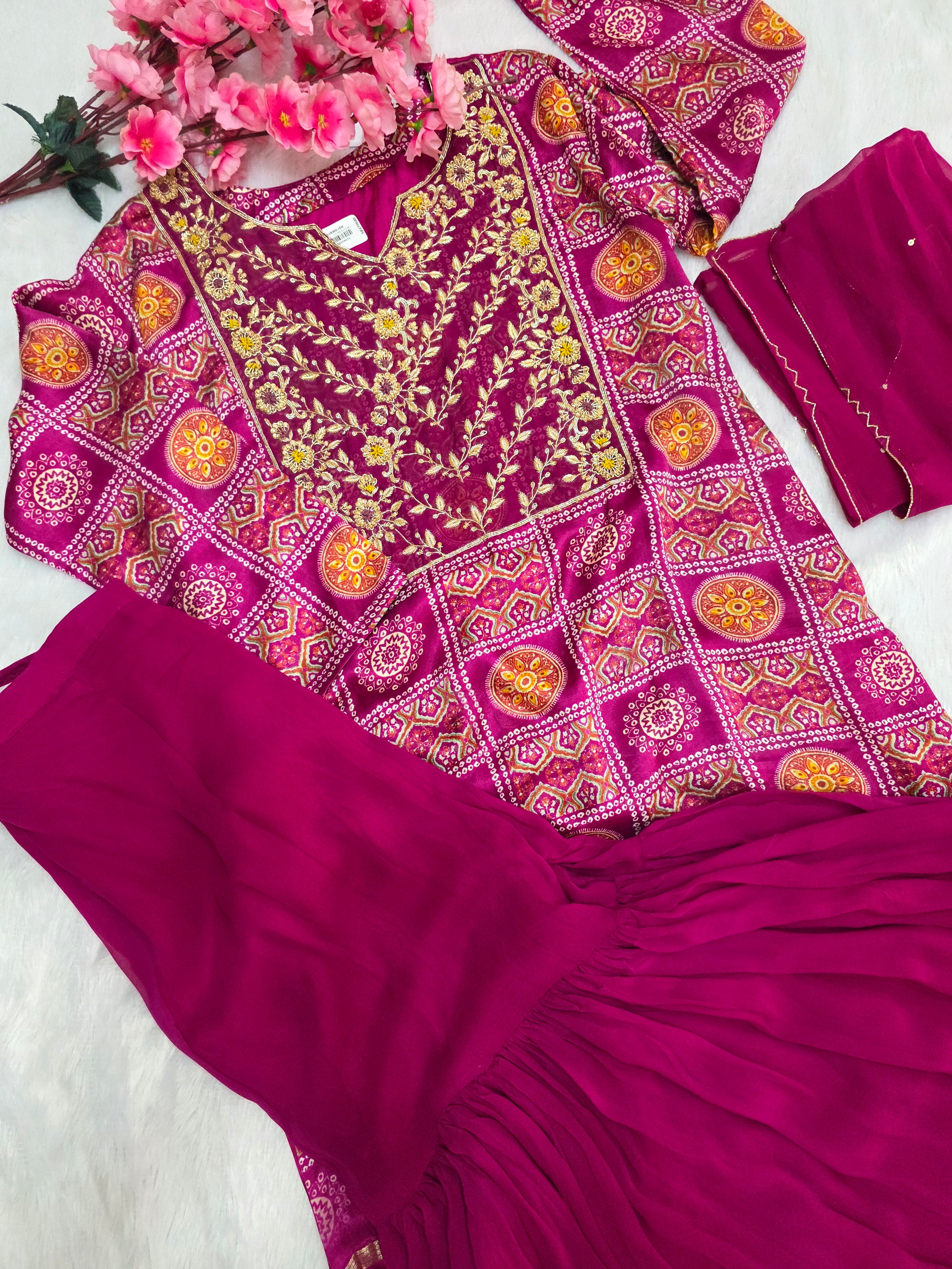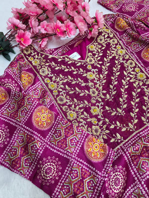 1662 प्रीमियम गज्जी सिल्क बंधनी शेडेड गाउन गज्जी सिल्क दुपट्टे के साथ