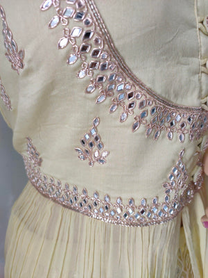 डिजाइनर पीला फ्रंट कट लॉन्ग कुर्ती स्टाइल प्रीमियम लहंगा