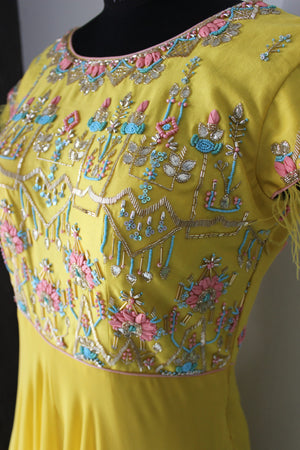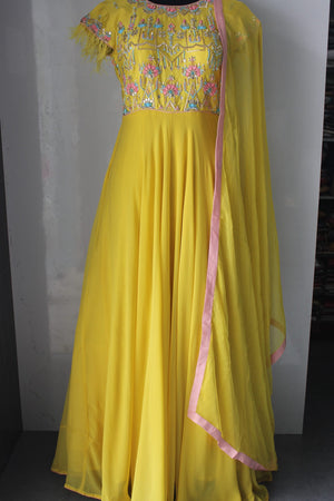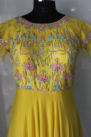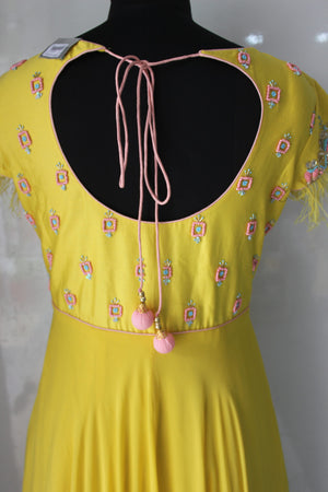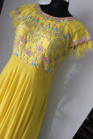 पंख आस्तीन शैली पीला गाउन