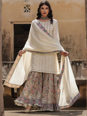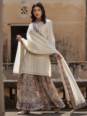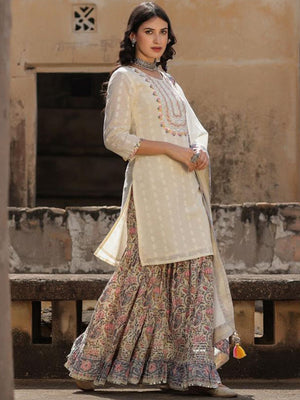आइवरी शॉट कुर्ता विद शरारा विद दुपट्टा - 10054