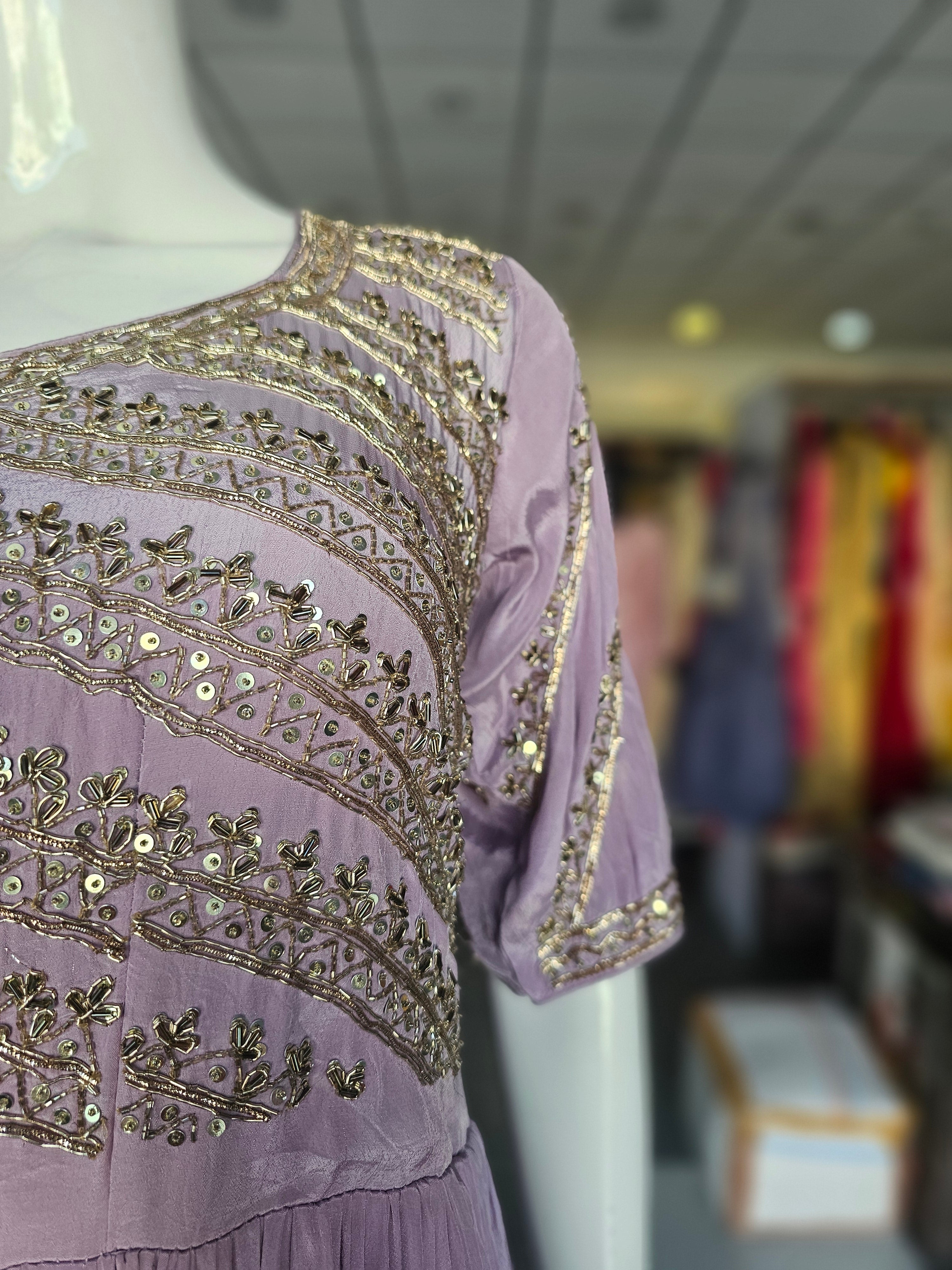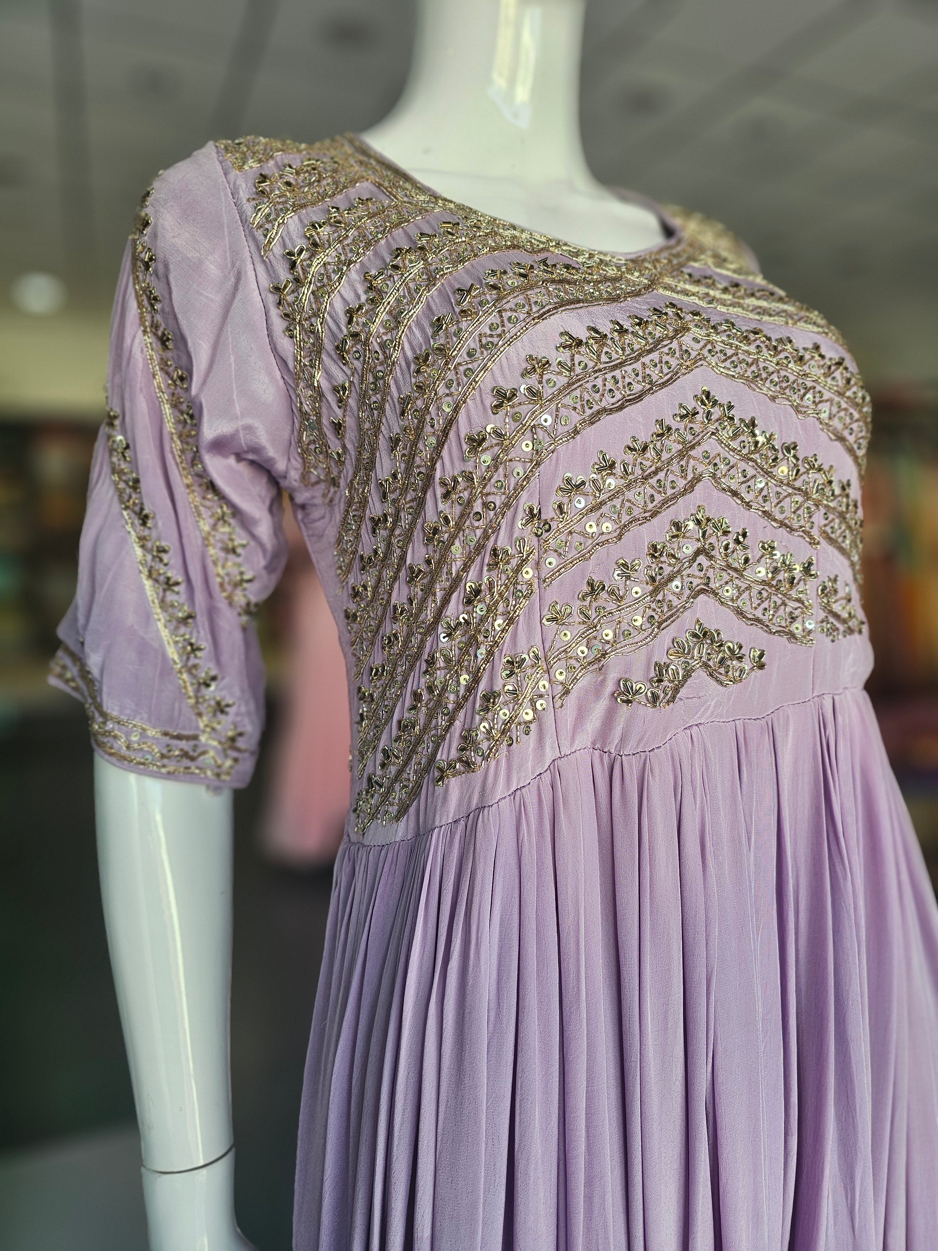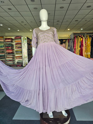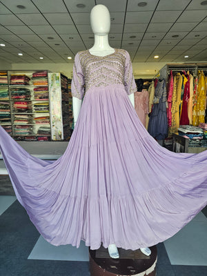 0229 Premium Crepe Silk Gown with beautiful Cutdana and zardozi Work