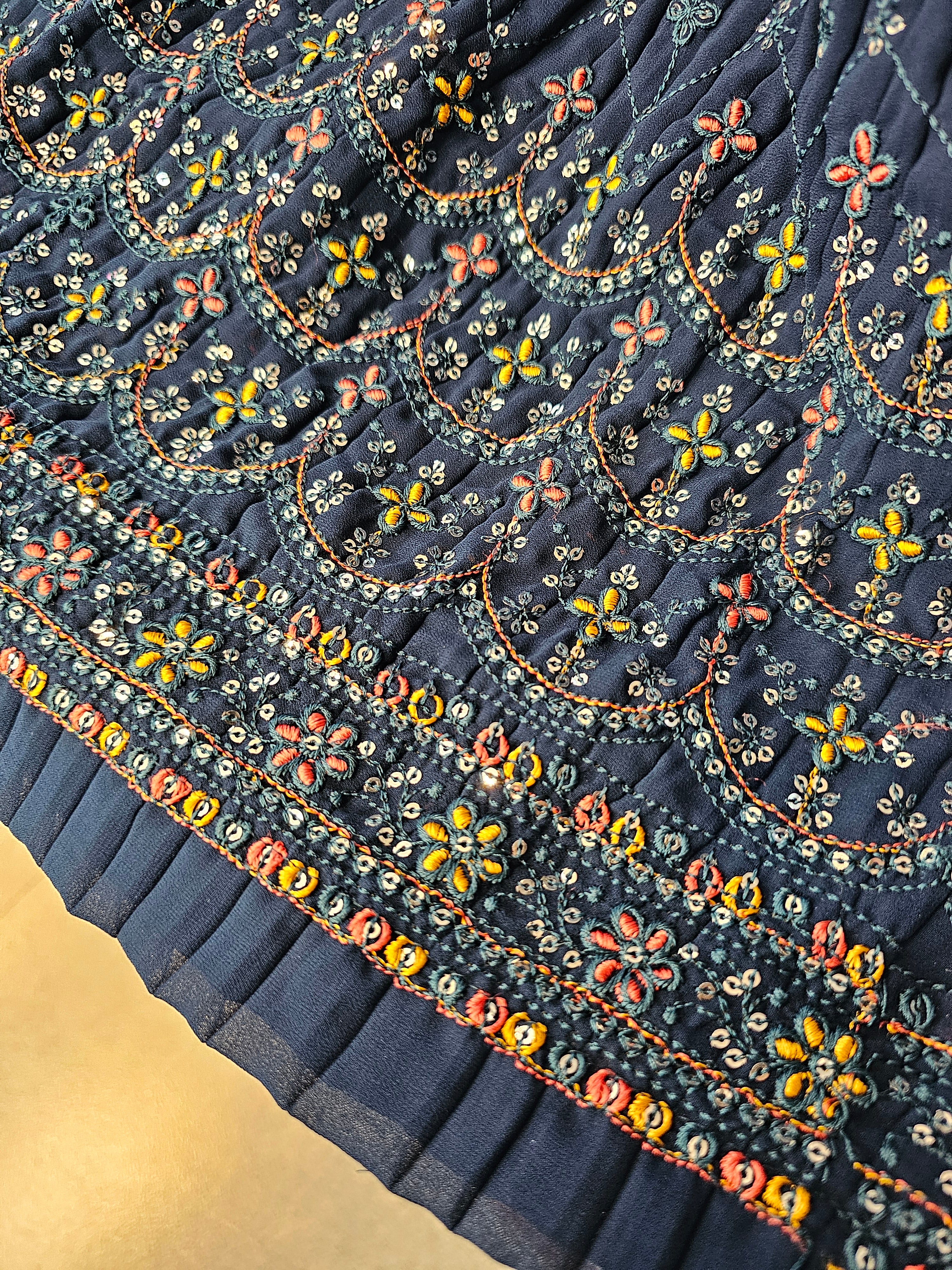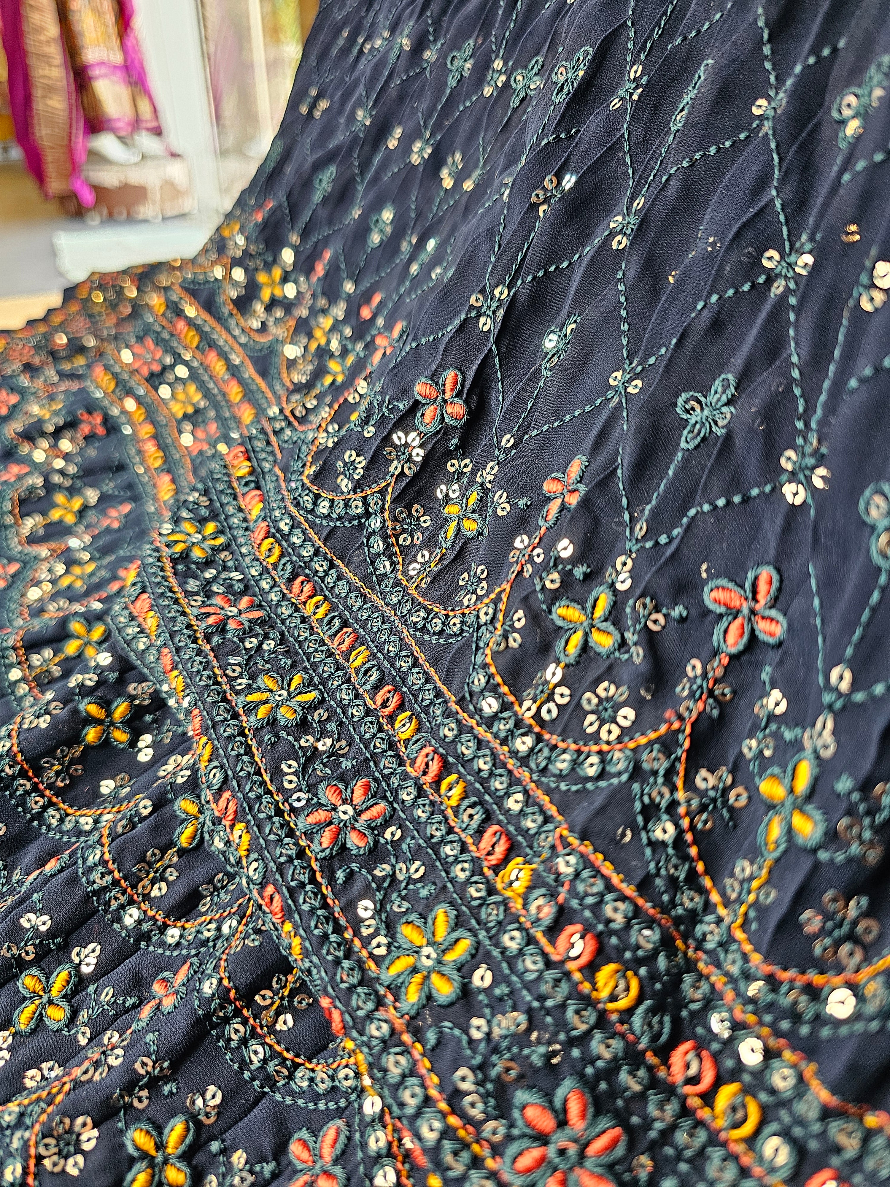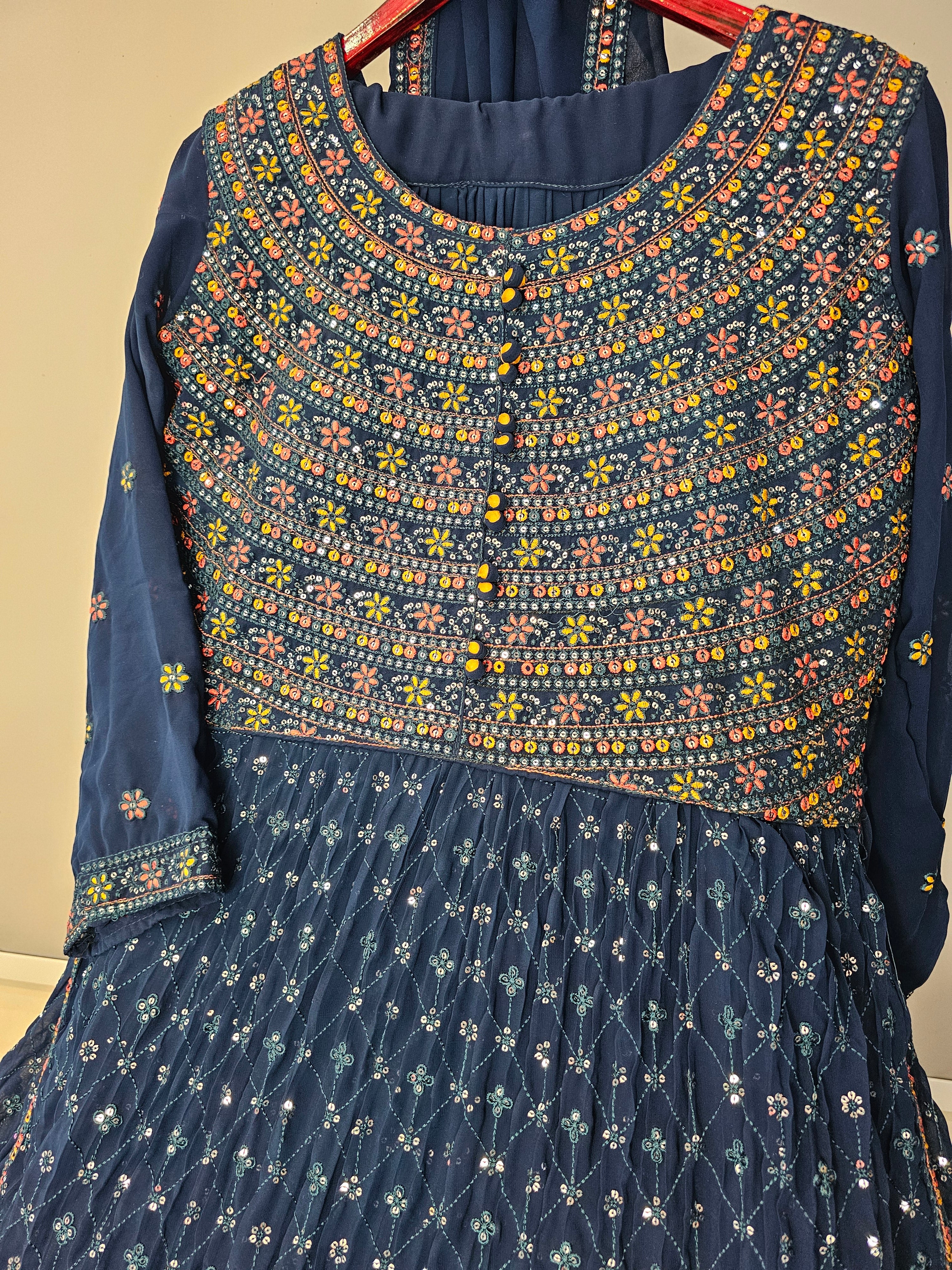 - Highlight : Designer Peplum Style Sequence Work Georgette Dress with Skirt and Dupatta