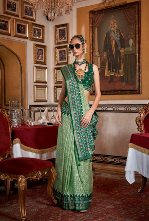 100705 Premium Patola Print Silk Saree With Gold Print - Green