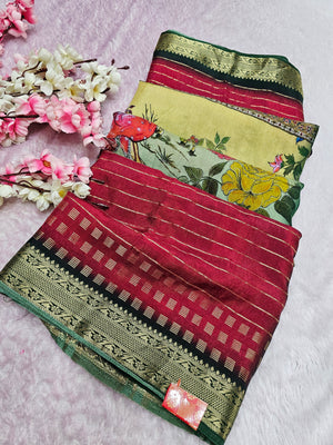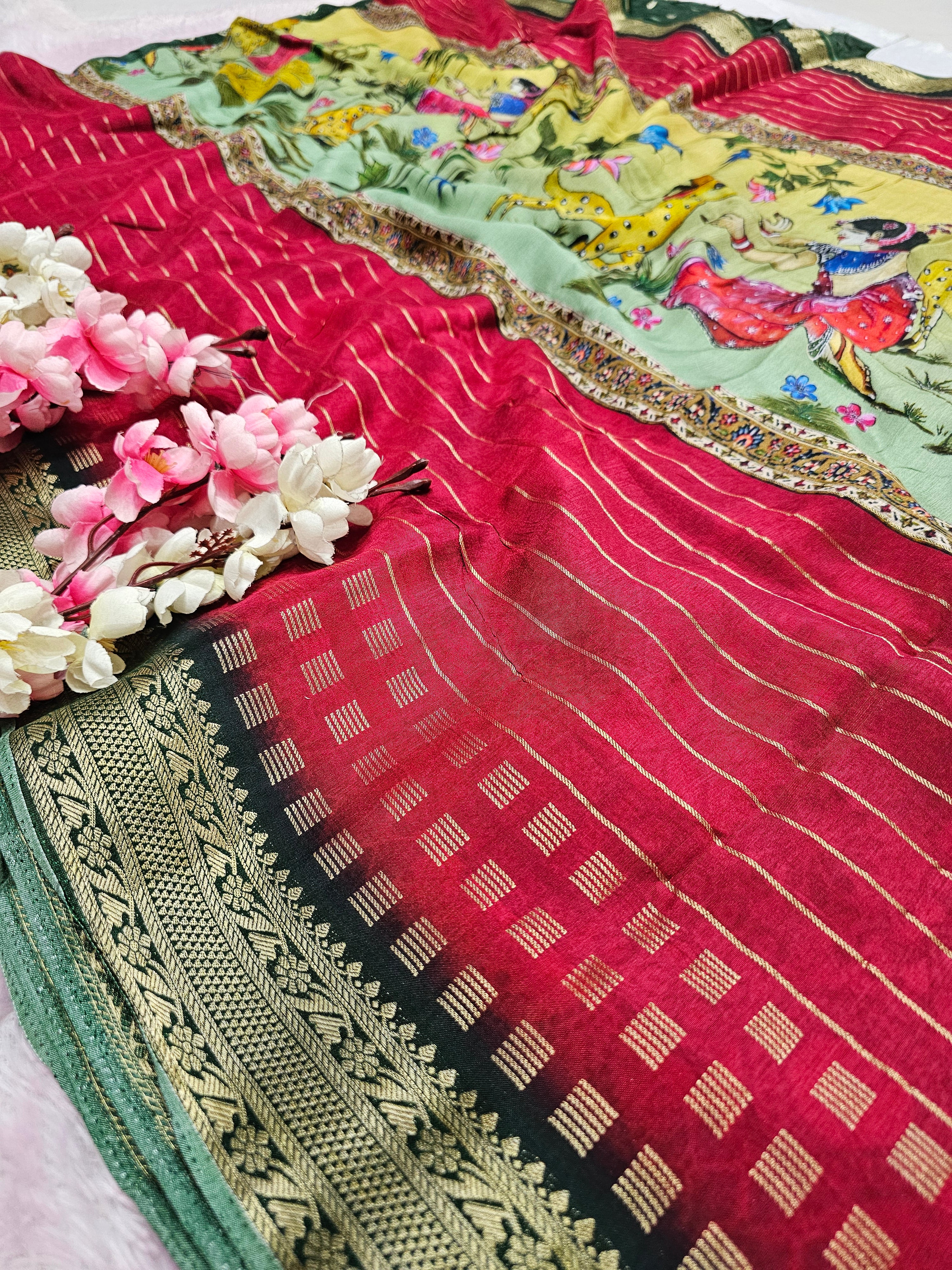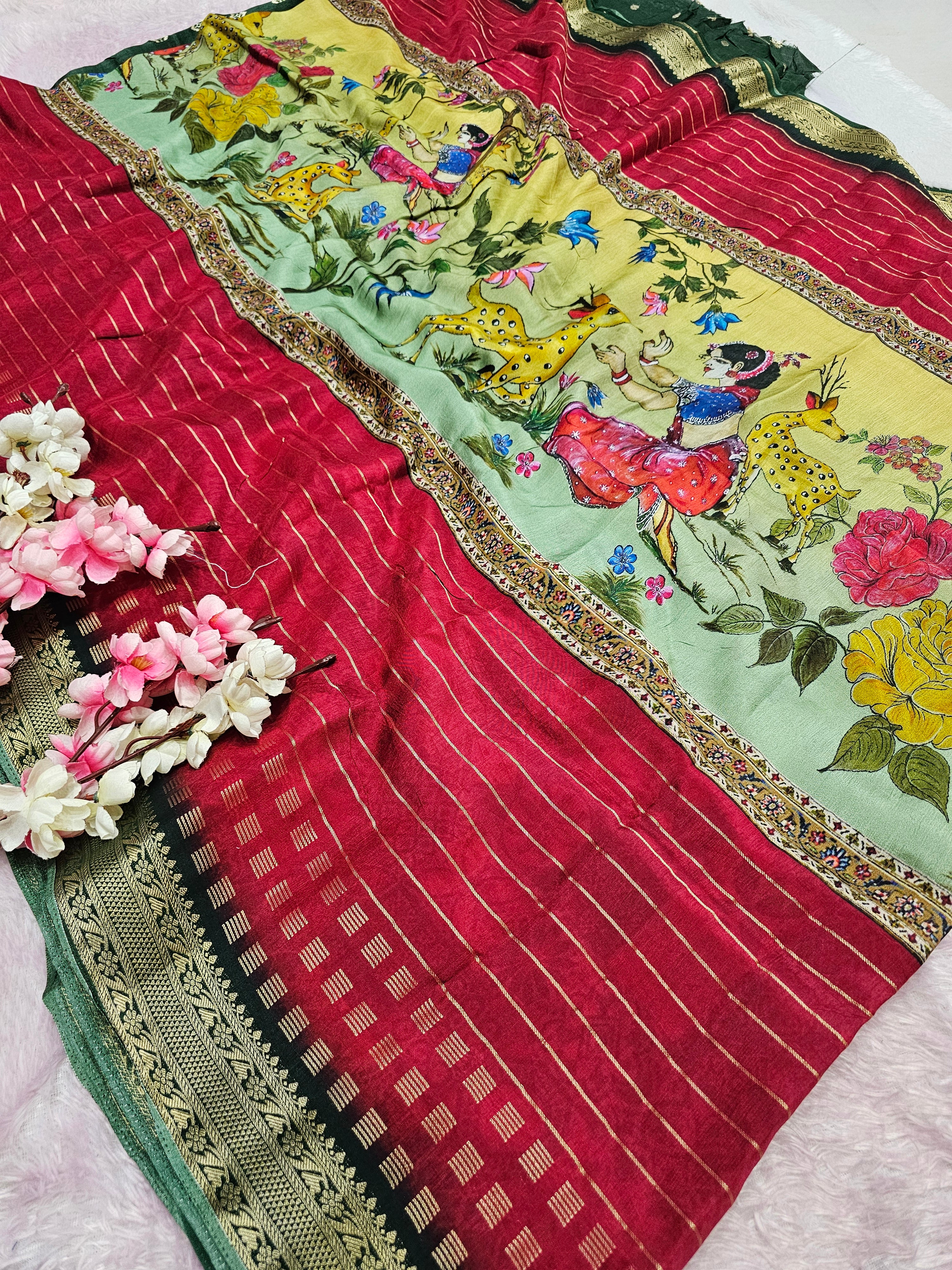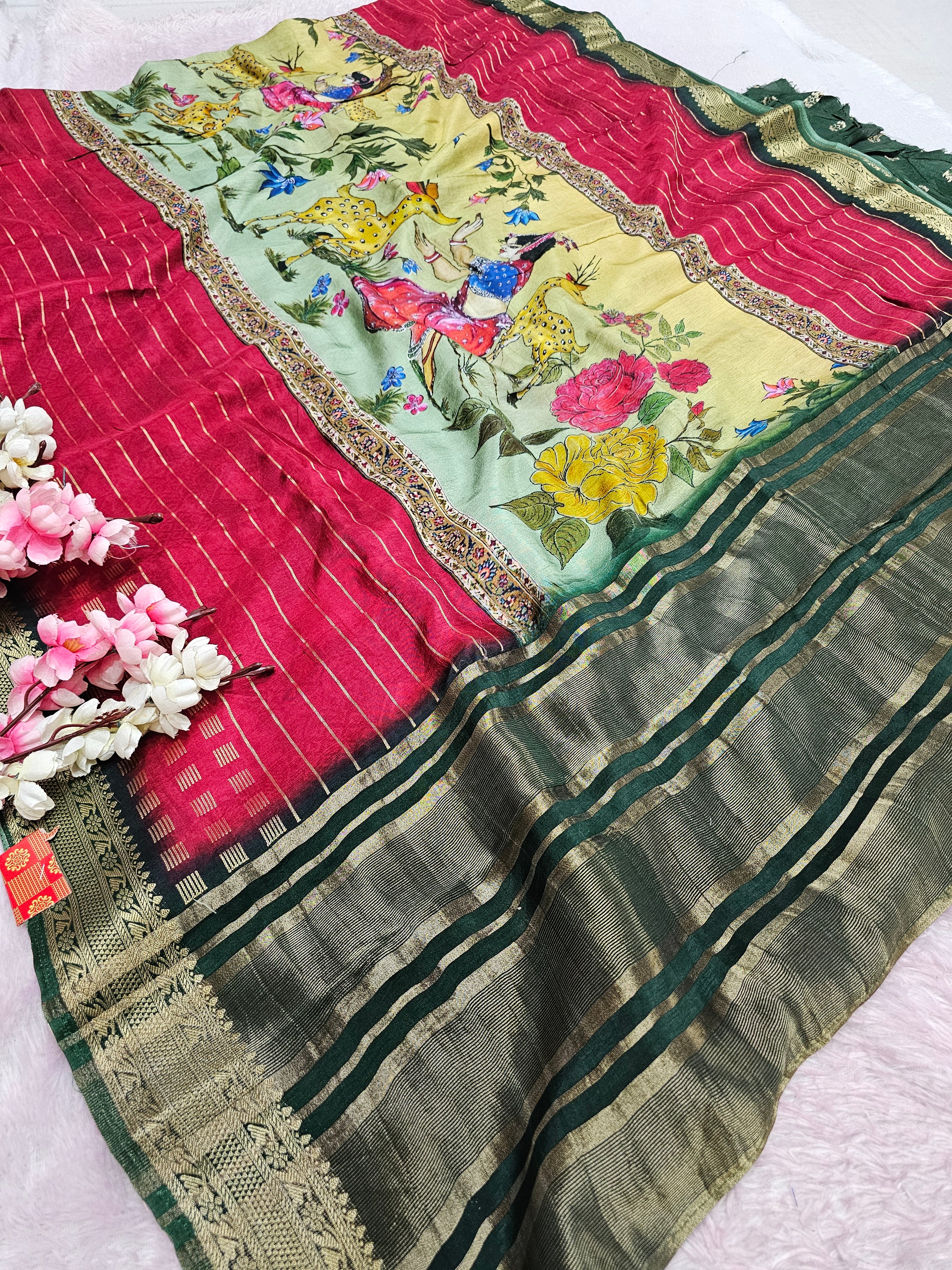 100801 Chitra Special Pure Viscos Silk Designer Rajasthani Print Saree with Zari Weaving