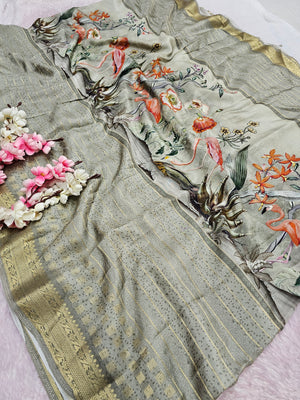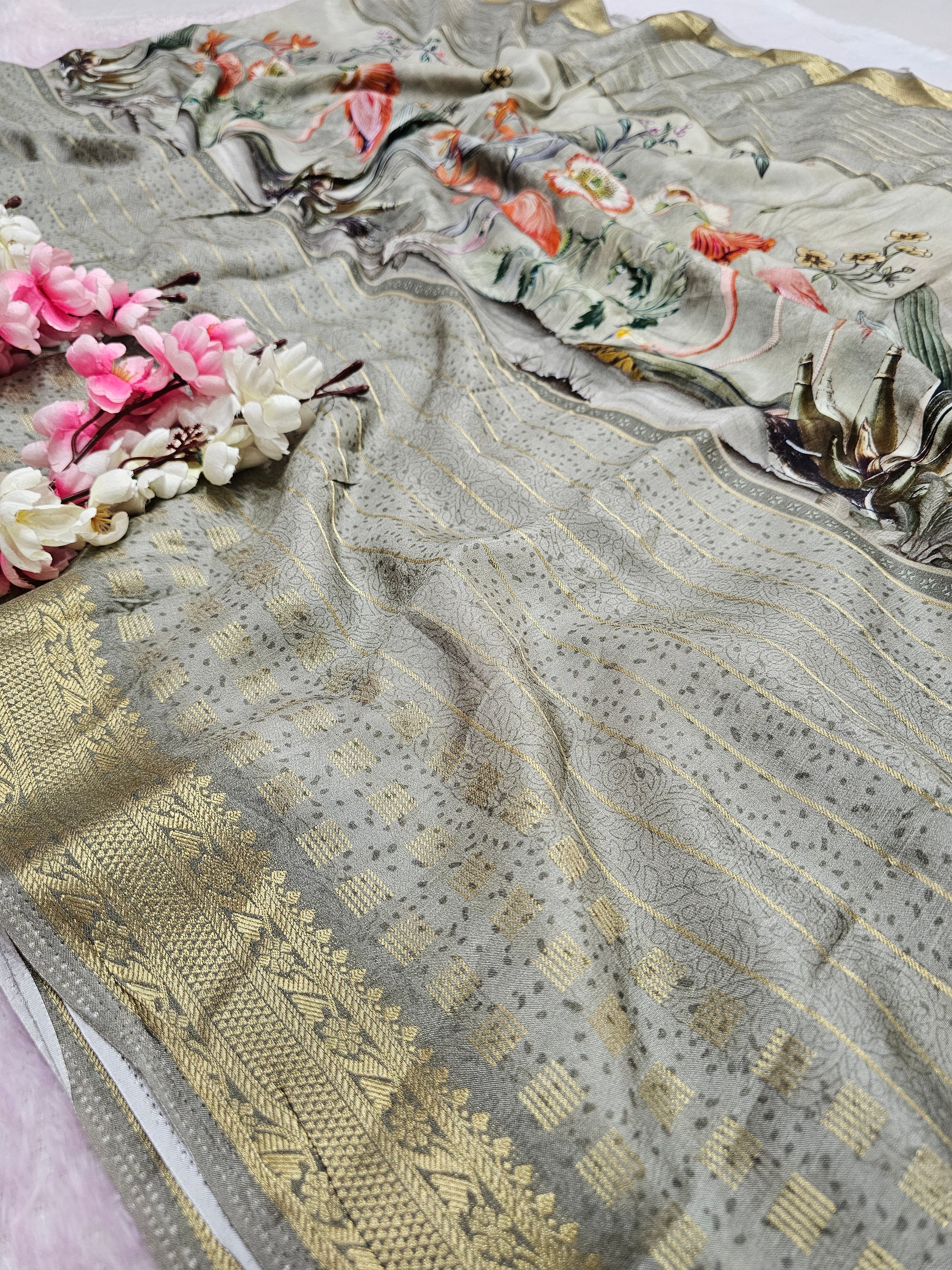 100802 Chitra Special Pure Viscos Silk Designer Rajasthani Print Saree with Zari Weaving