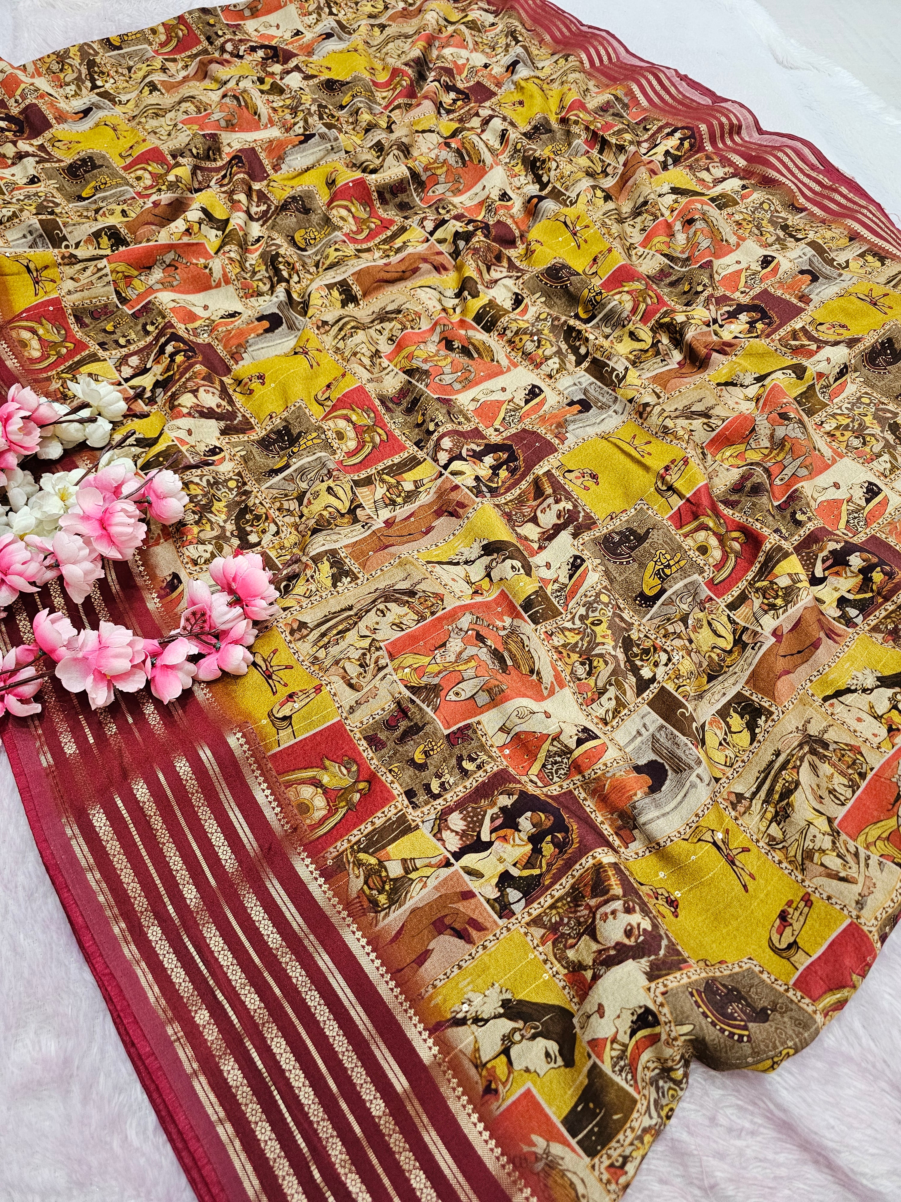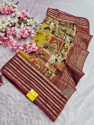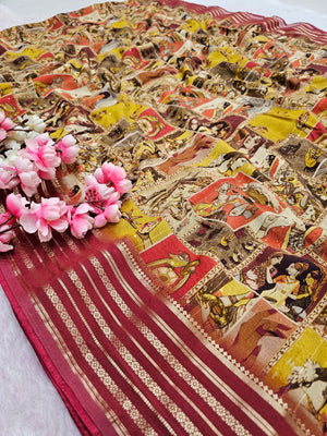 100805 Chitra Special Pure Maslin Silk Designer Rajasthani Print Saree with Zari Weaving