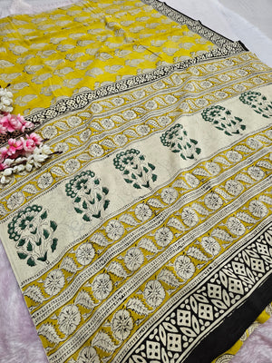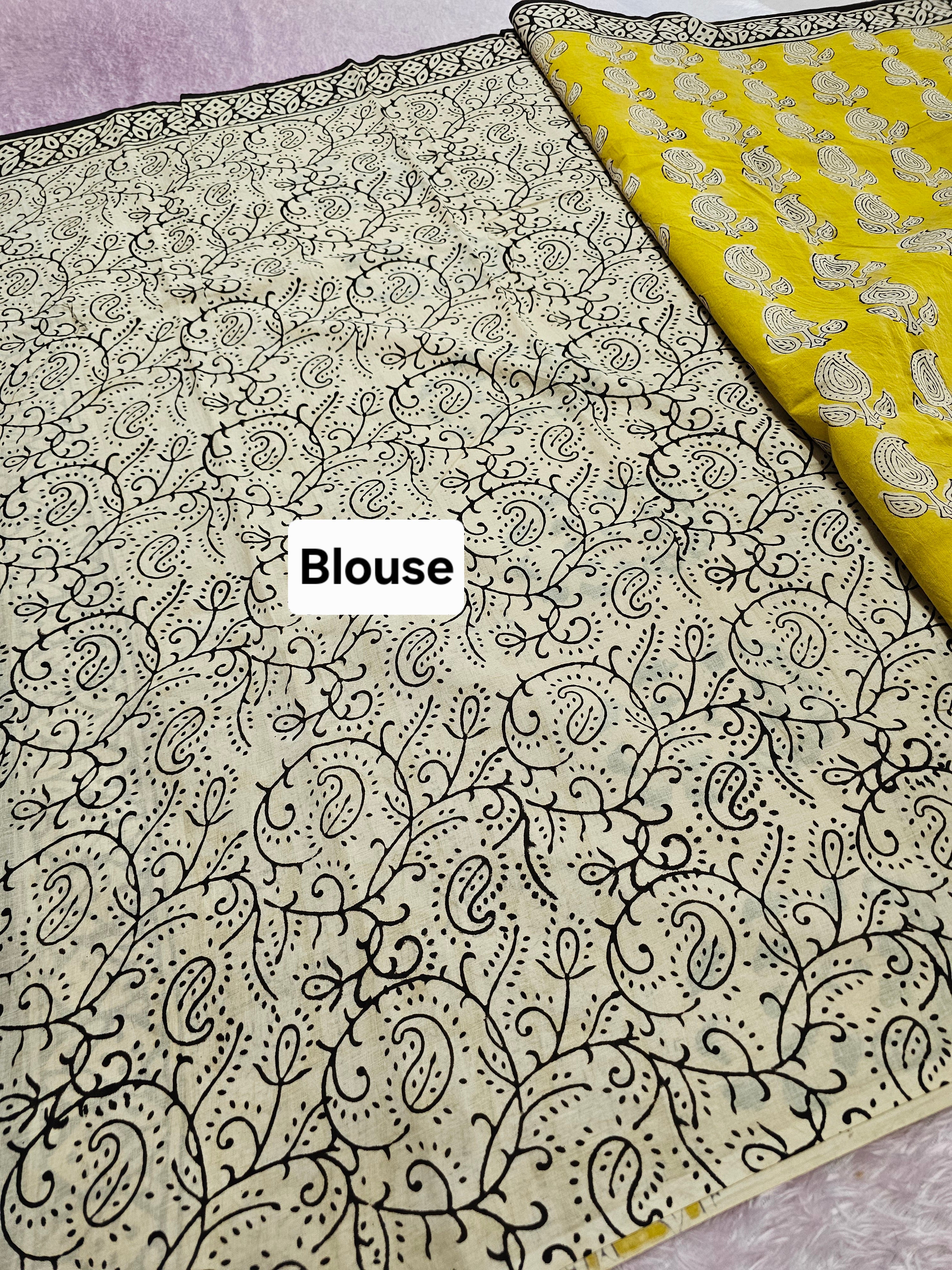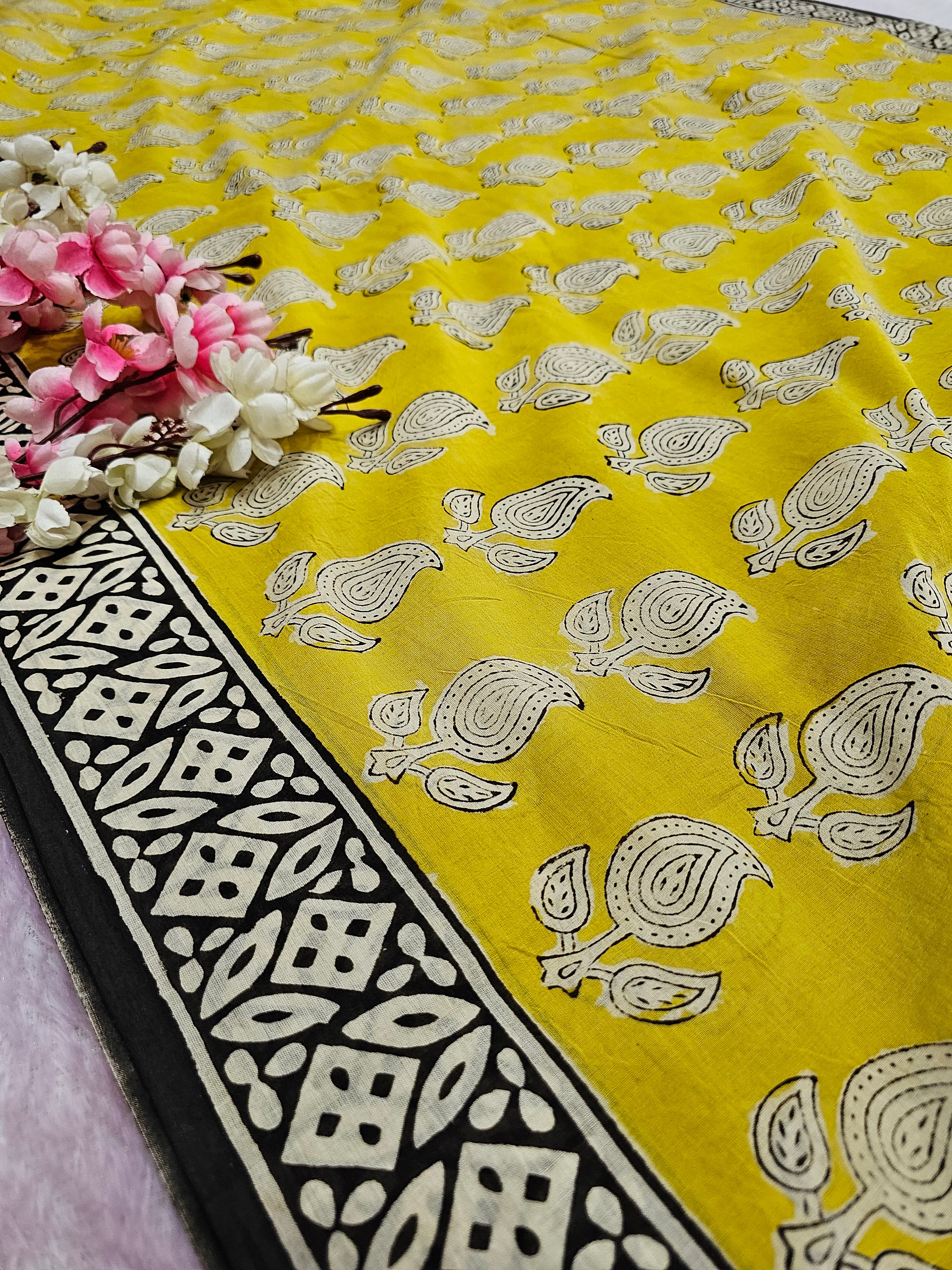 100901 Rajasthani Traditional Pure Malmal Cotton Hand block Printed Saree