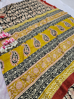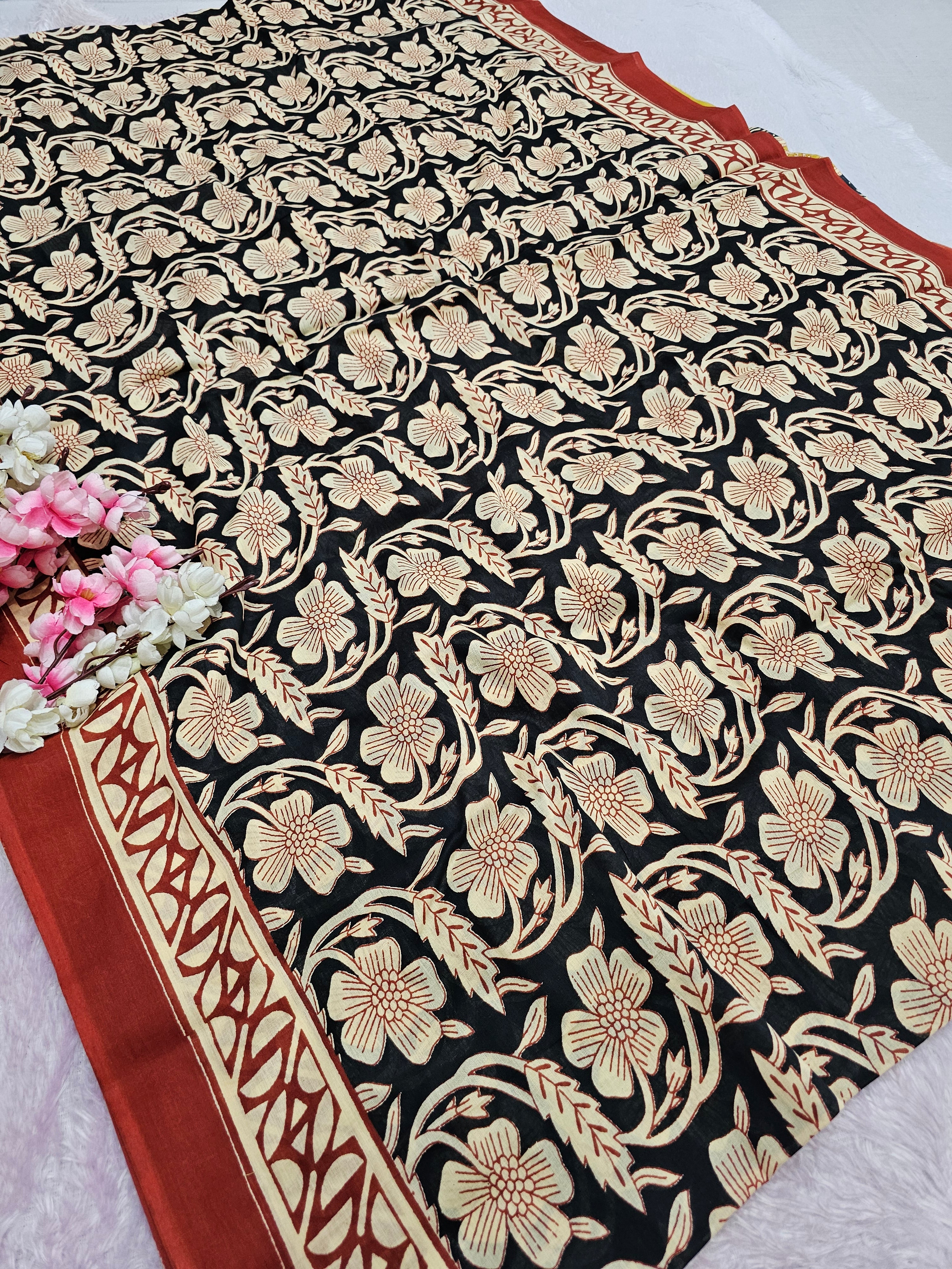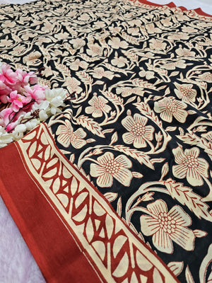 100903 Rajasthani Traditional Pure Malmal Cotton Hand block Printed Saree