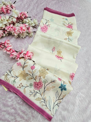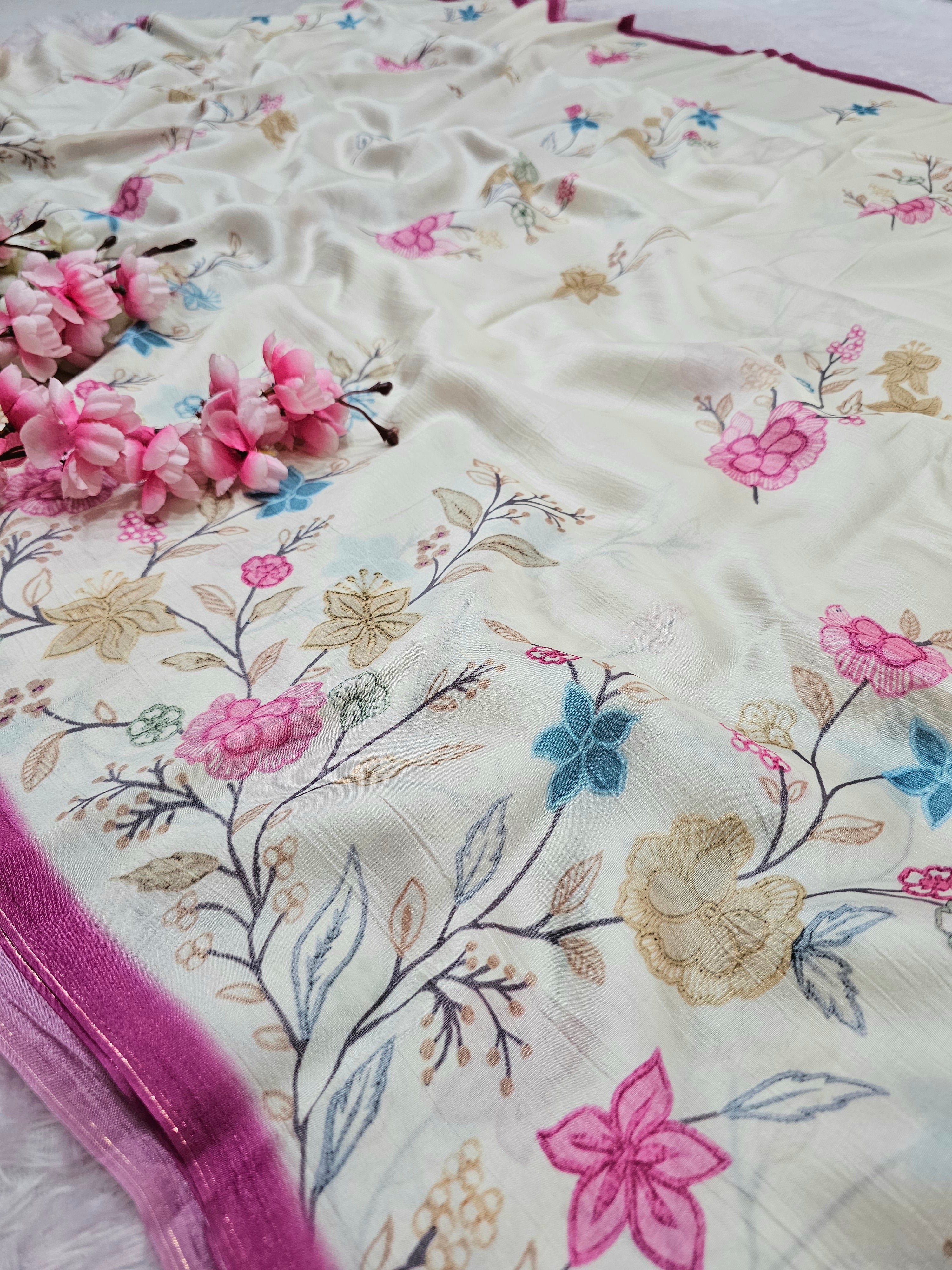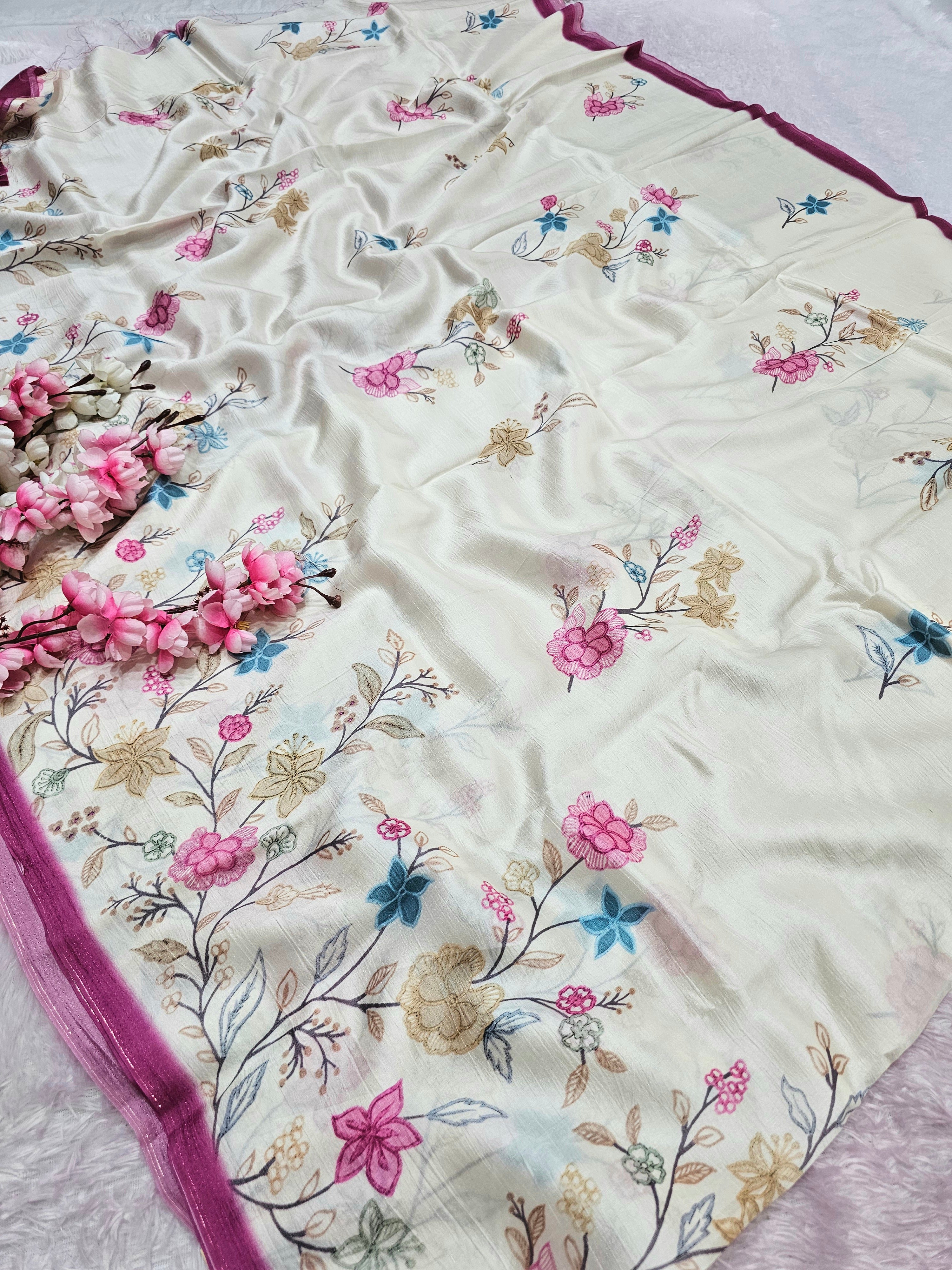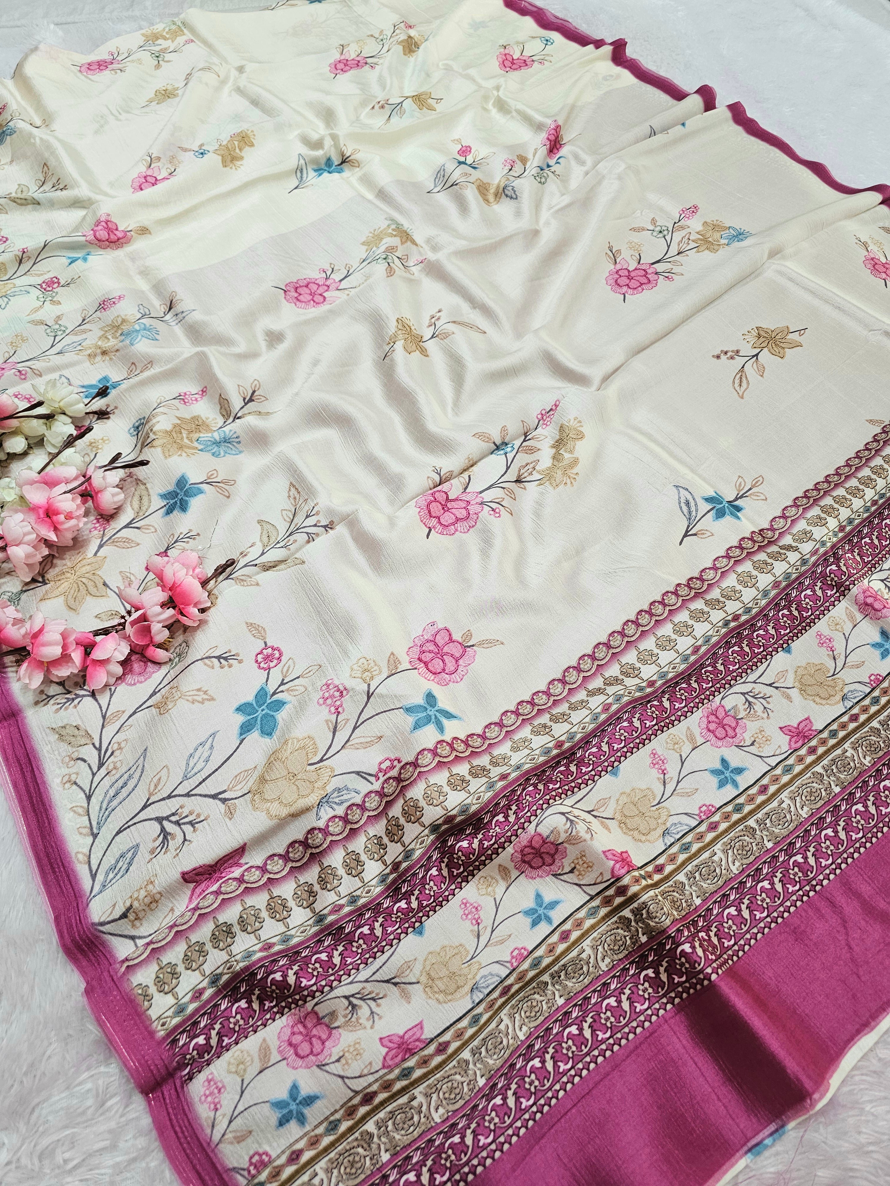 101002 Exclusive Pure Tusser Silk Traditional Flower Print Saree