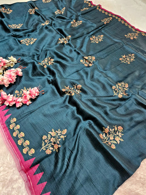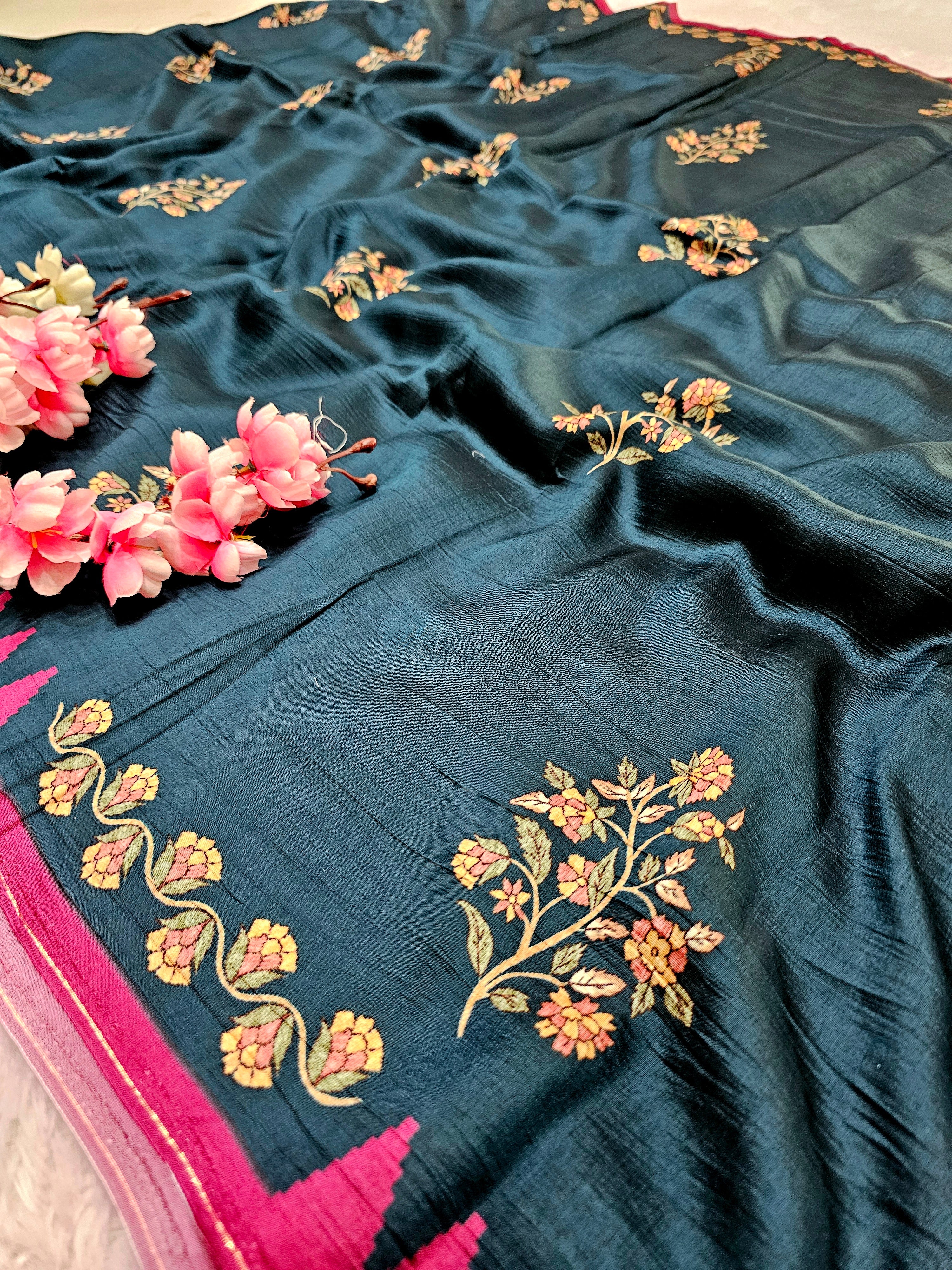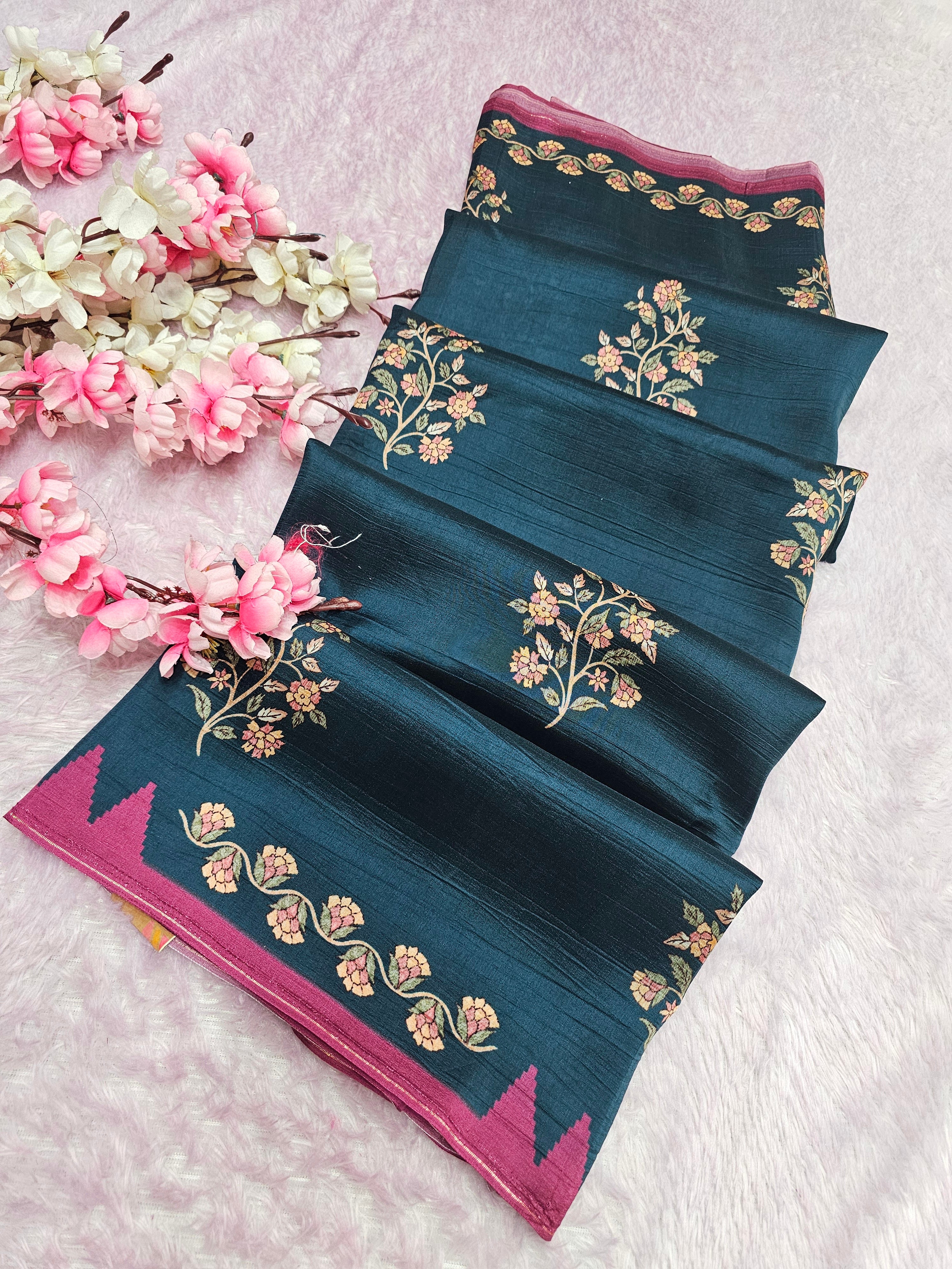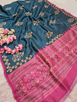 101003 Exclusive Pure Tusser Silk Traditional Flower Print Saree